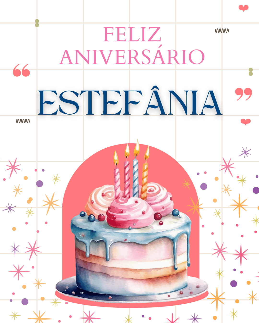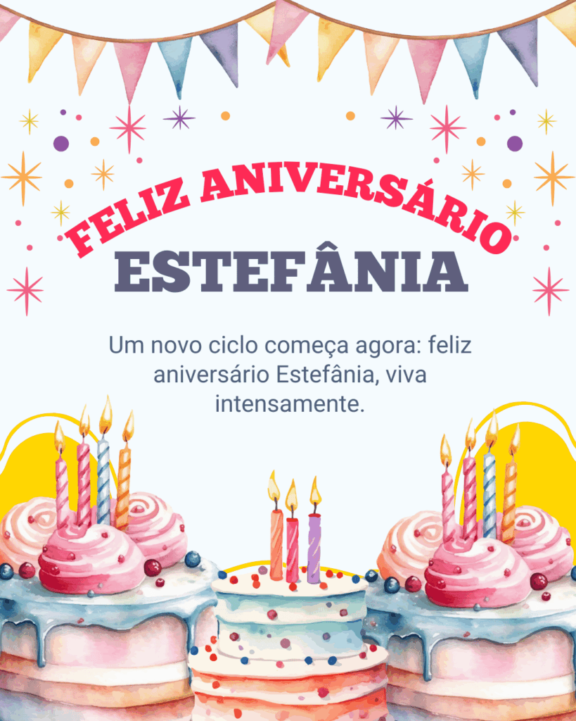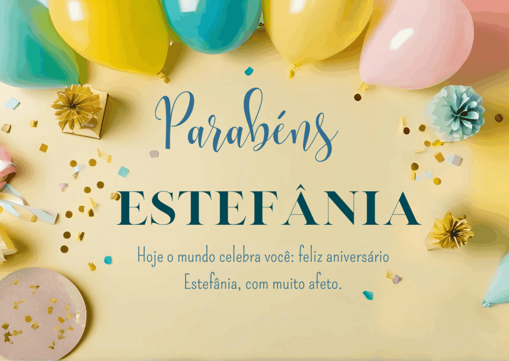 Feliz aniversário Estefânia! Que hoje você receba carinho em cada detalhe: mensagens bonitas, abraços sinceros e uma comemoração do seu jeito. Você é uma pessoa marcante, com uma energia boa que inspira e aproxima.