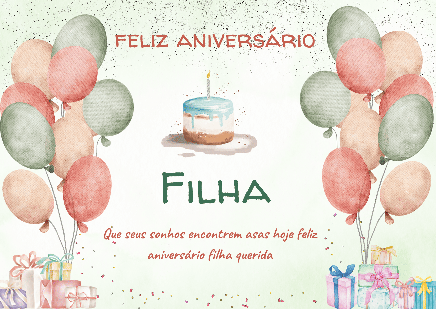 Minha filha, hoje é dia de comemorar você, sua história e tudo o que está construindo. Cada fase sua me emociona, e eu sou grato(a) por poder acompanhar seu crescimento de perto.