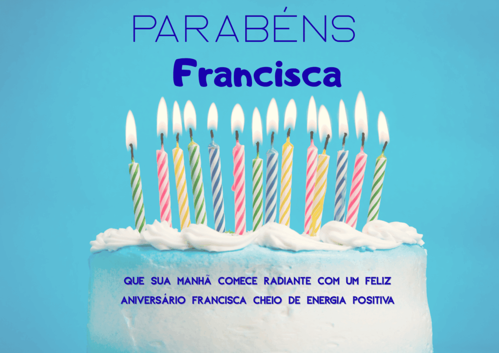 Neste dia especial, Francisca, desejo que Deus derrame bênçãos abundantes sobre você. Que seu feliz aniversario Francisca seja cheio de paz, saúde e conquistas.
