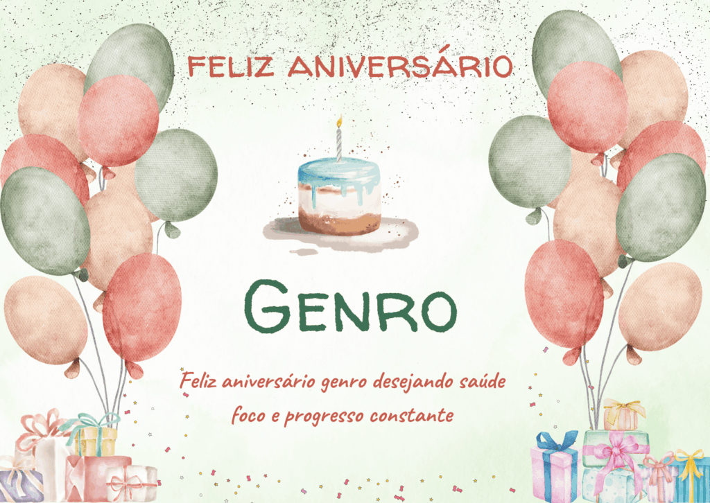 Feliz aniversário genro! Hoje eu quero te desejar um dia especial e agradecer pela pessoa que você é. É muito bom ver o carinho e o respeito com que você cuida da nossa família. Sua presença traz tranquilidade, e isso tem muito valor.