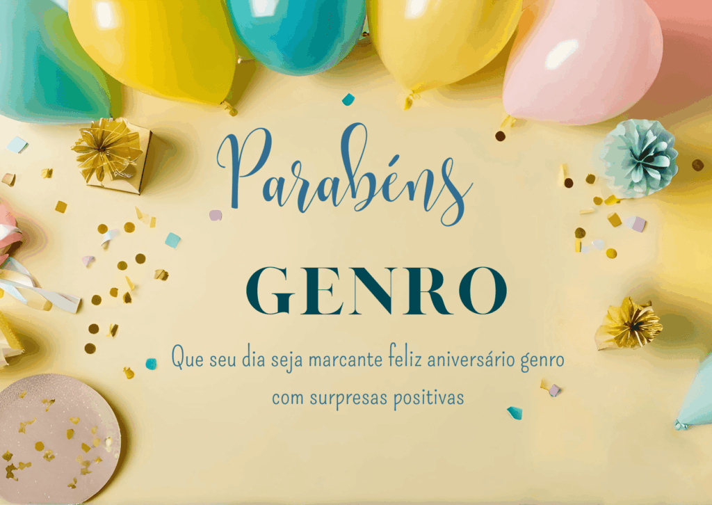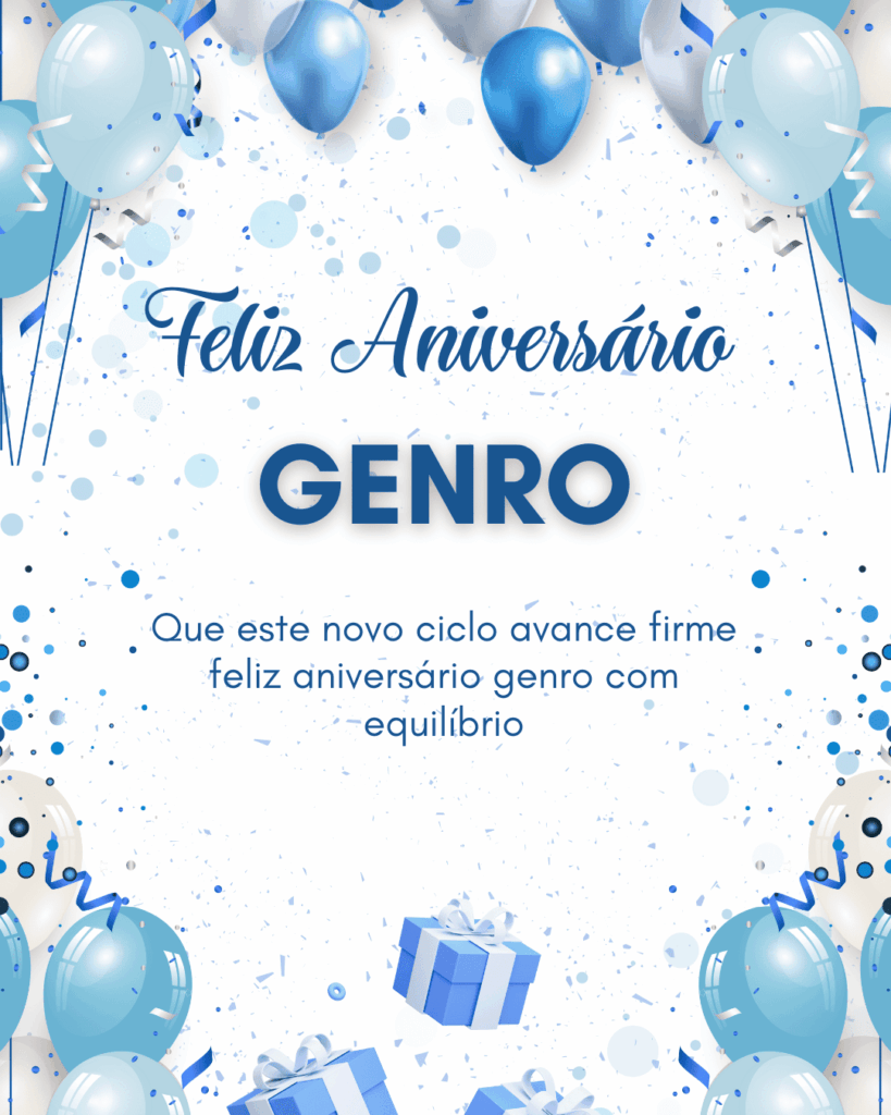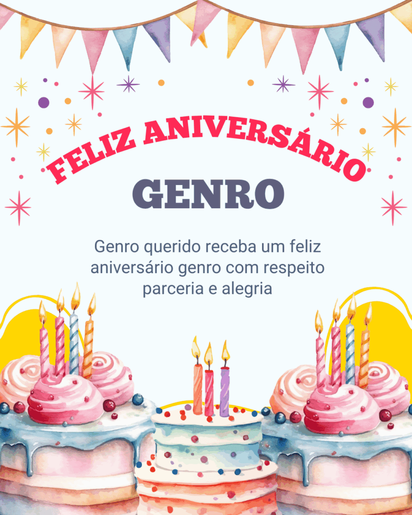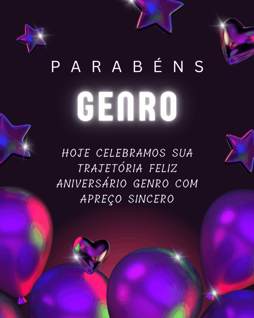 Feliz aniversário genro! Hoje eu desejo que você receba carinho em cada detalhe: uma mensagem bonita, um abraço sincero e um dia do seu jeito. Eu admiro a forma como você enfrenta a vida com seriedade e, ao mesmo tempo, com leveza quando precisa.
