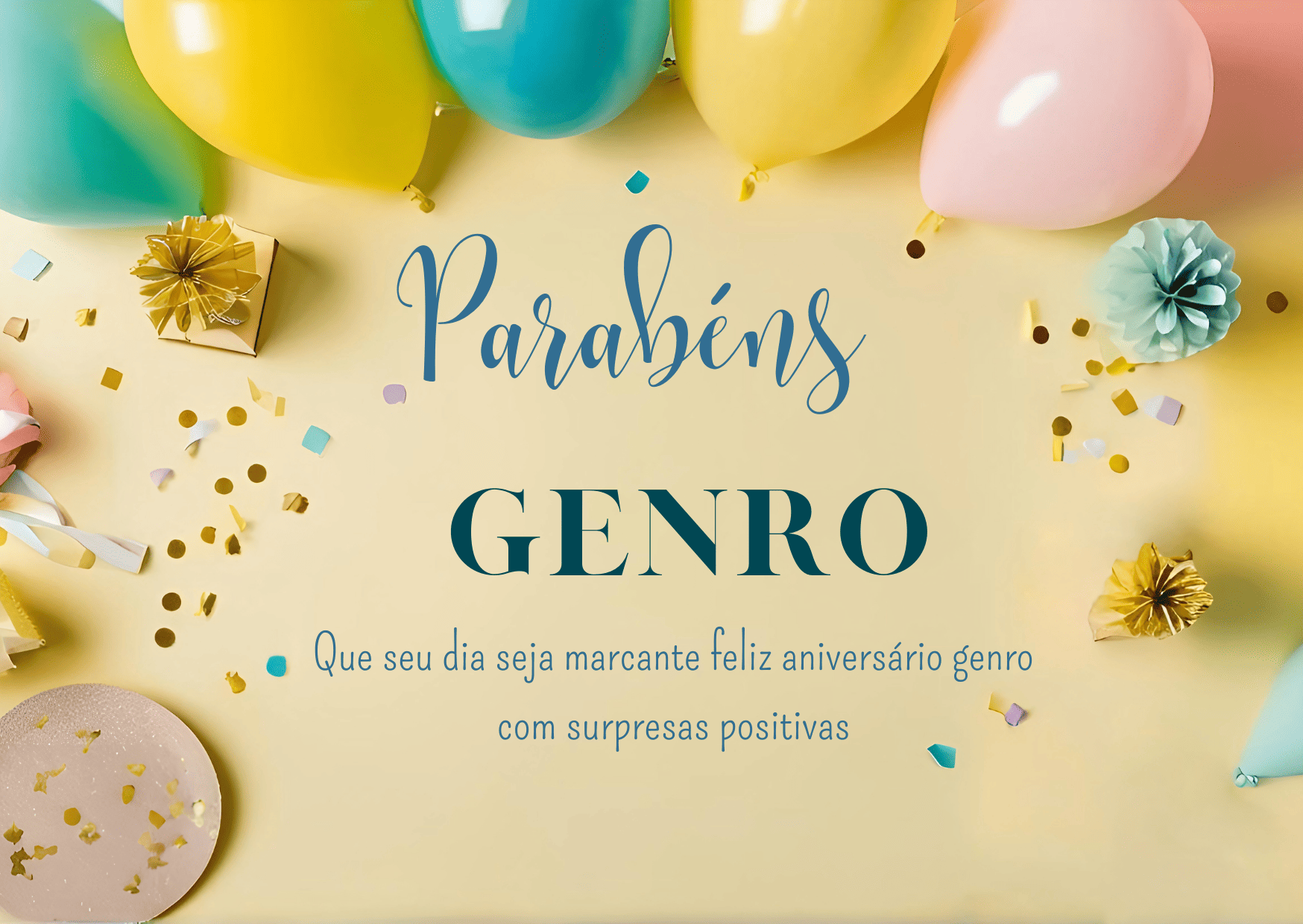 Feliz aniversário genro! Neste dia especial, eu desejo que você se sinta valorizado e querido. Você tem um jeito firme e, ao mesmo tempo, humano de lidar com a vida, e isso inspira confiança. Obrigado por somar e por estar presente.