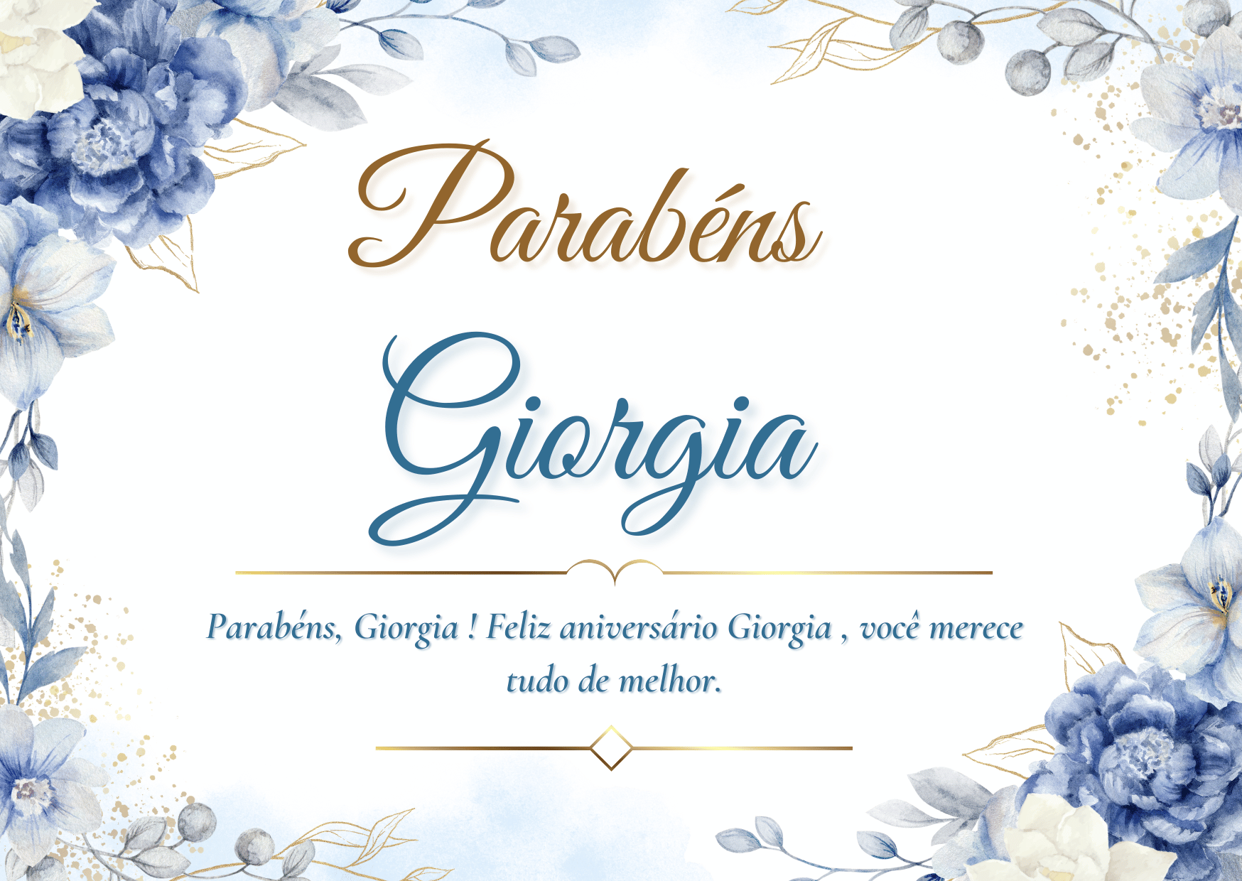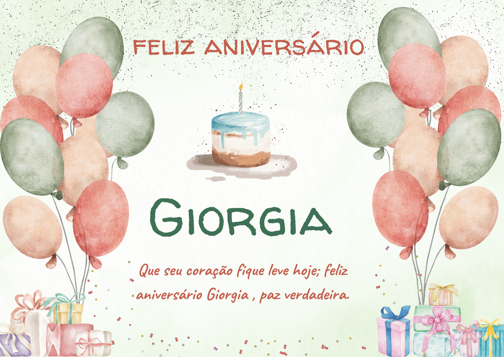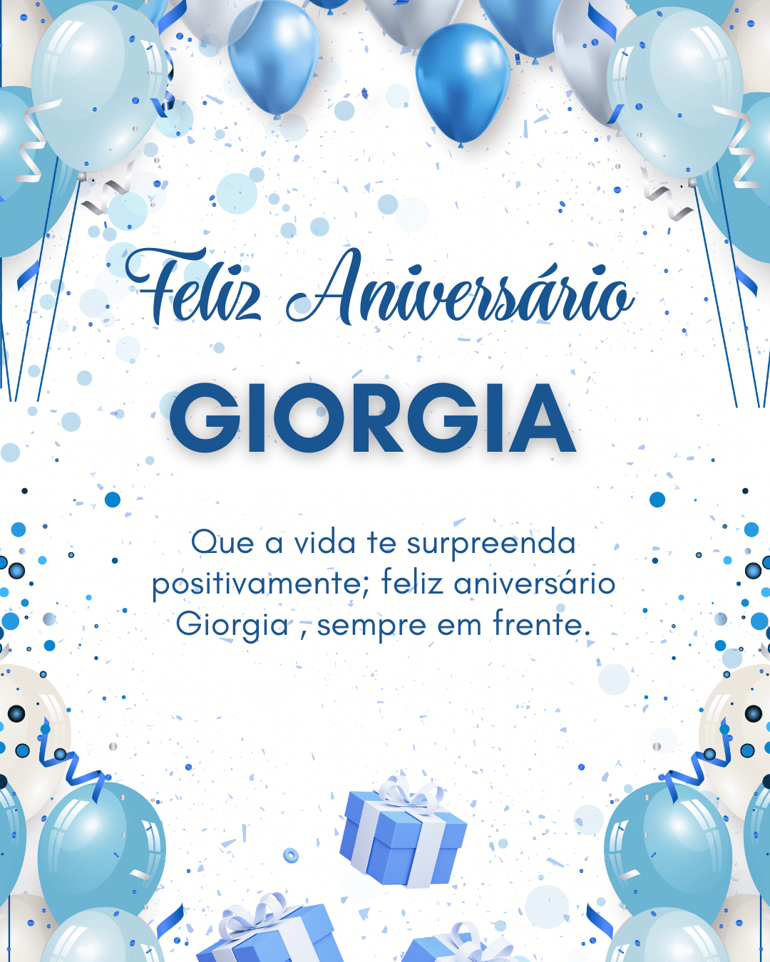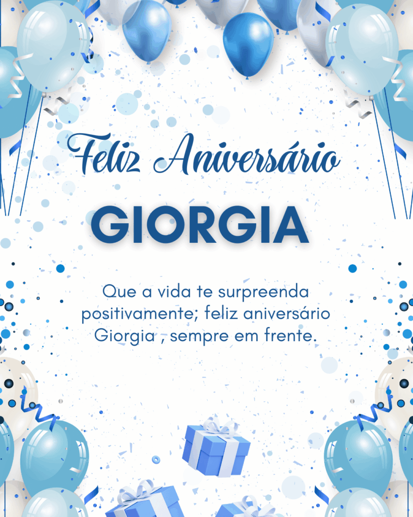Giorgia, se eu pudesse escolher um presente perfeito para você, eu escolheria um ano inteiro de paz e amor. Paz para a sua mente e amor para o seu coração, todos os dias. Feliz aniversário Giorgia, que você se sinta valorizada hoje e sempre.