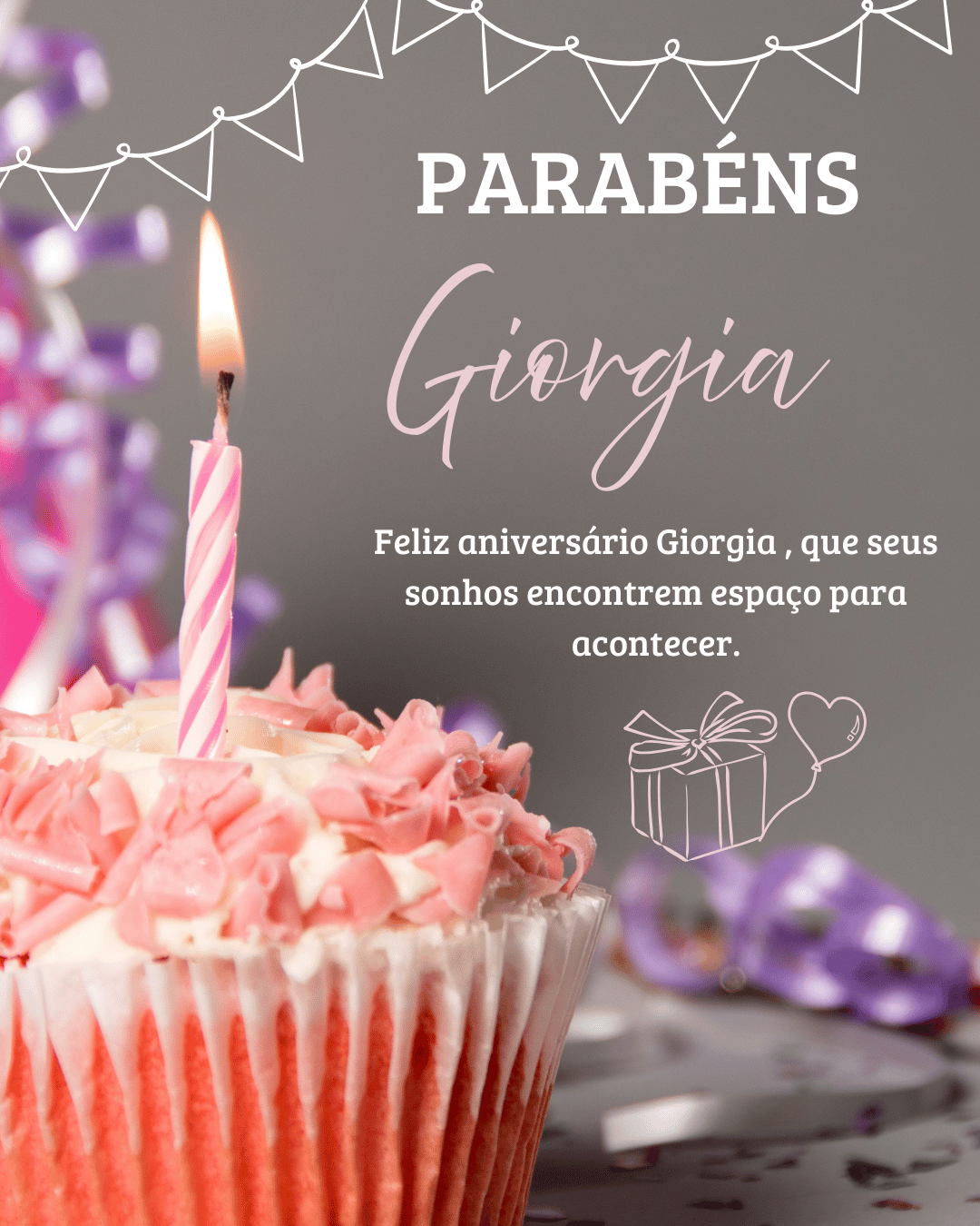 Feliz aniversário Giorgia! Hoje é dia de celebrar sua vida, sua história e tudo o que você já superou para chegar até aqui. Que você tenha um aniversário com boas surpresas, abraços sinceros e muita alegria.