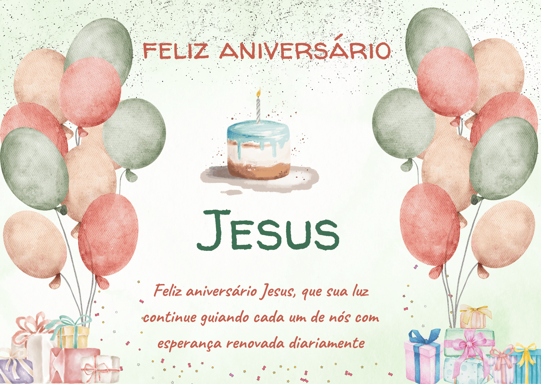 Neste dia tão especial, celebramos com alegria o feliz aniversário Jesus, Aquele que trouxe luz, esperança e amor à humanidade. Que este momento renove nossa fé e fortaleça nossos passos, lembrando-nos sempre de caminhar com bondade e gratidão.