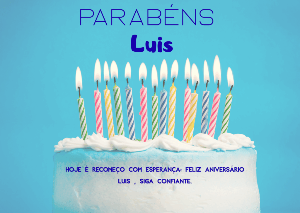 Feliz aniversário Luís! Hoje é dia de celebrar a sua vida e tudo o que você já construiu com esforço e dedicação. Que você tenha um aniversário com boa companhia, palavras bonitas e motivos de sobra para sorrir.
