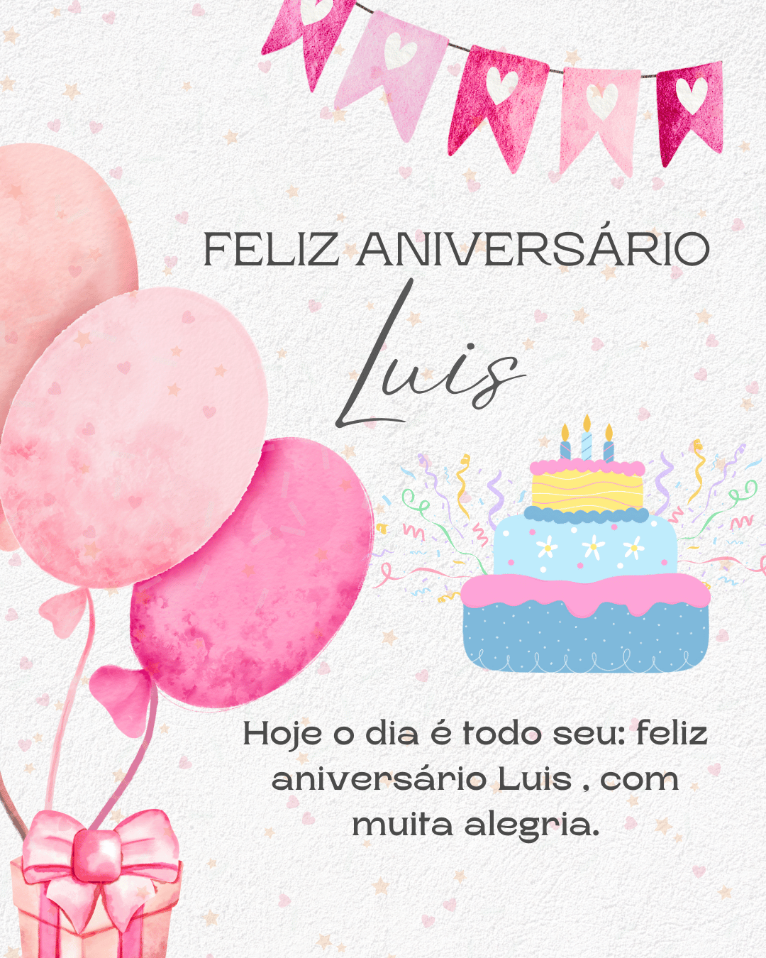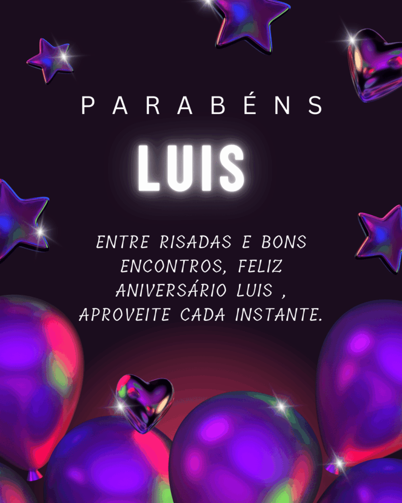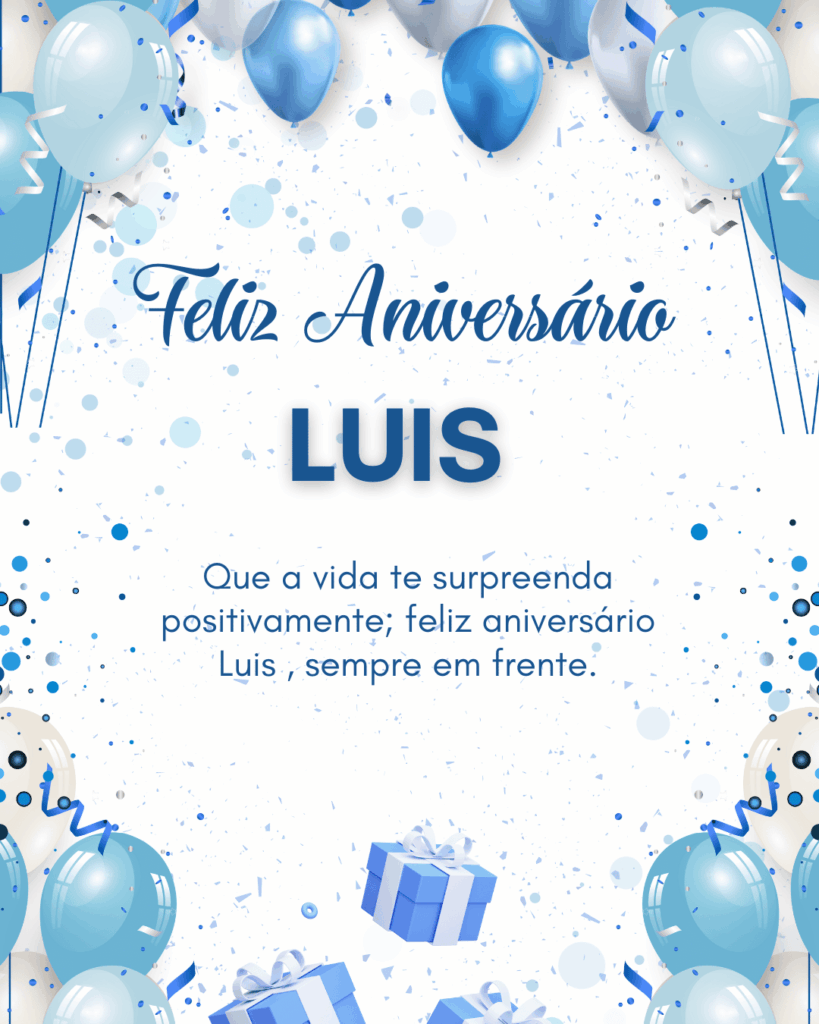 Luís, no seu aniversário eu te desejo um ano mais leve, com menos preocupações e mais motivos para comemorar. Que você tenha paz na mente, força para os desafios e alegria nas pequenas coisas do dia a dia. Feliz aniversário Luís!