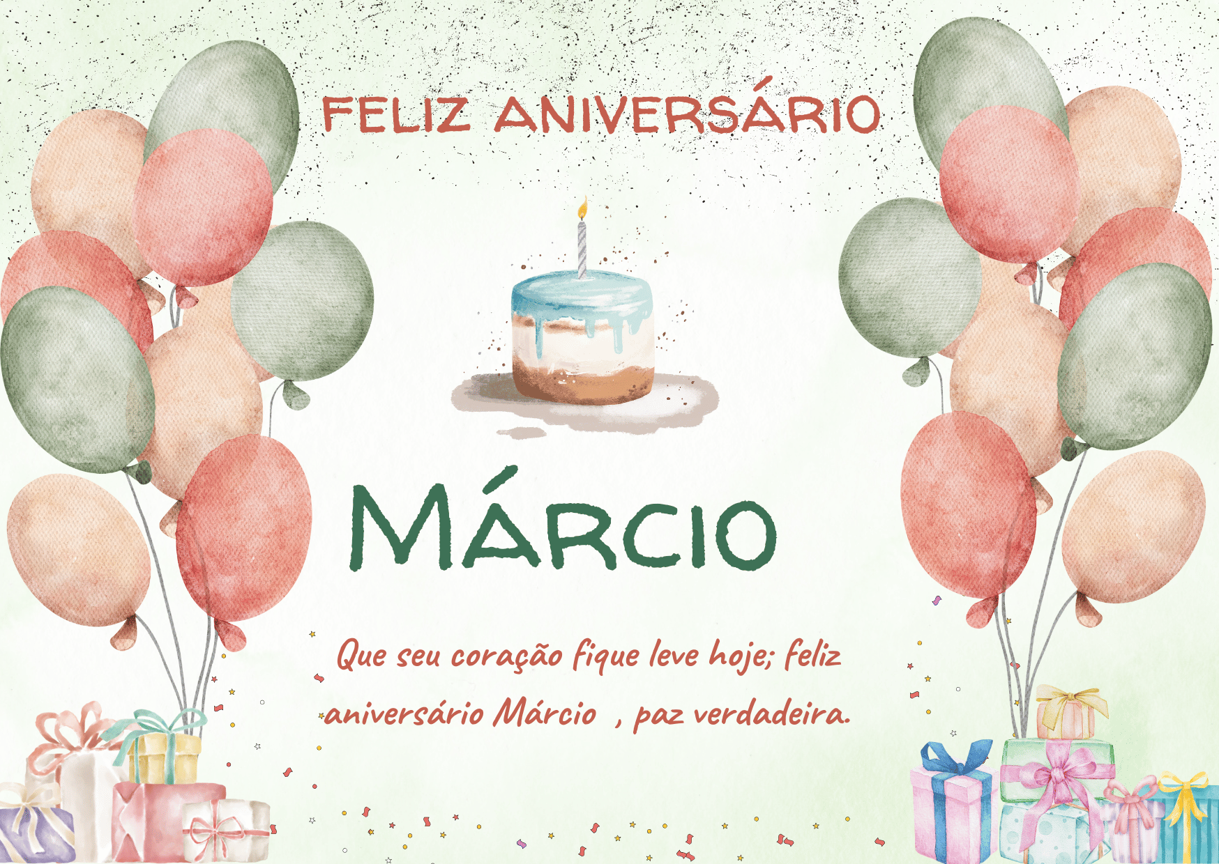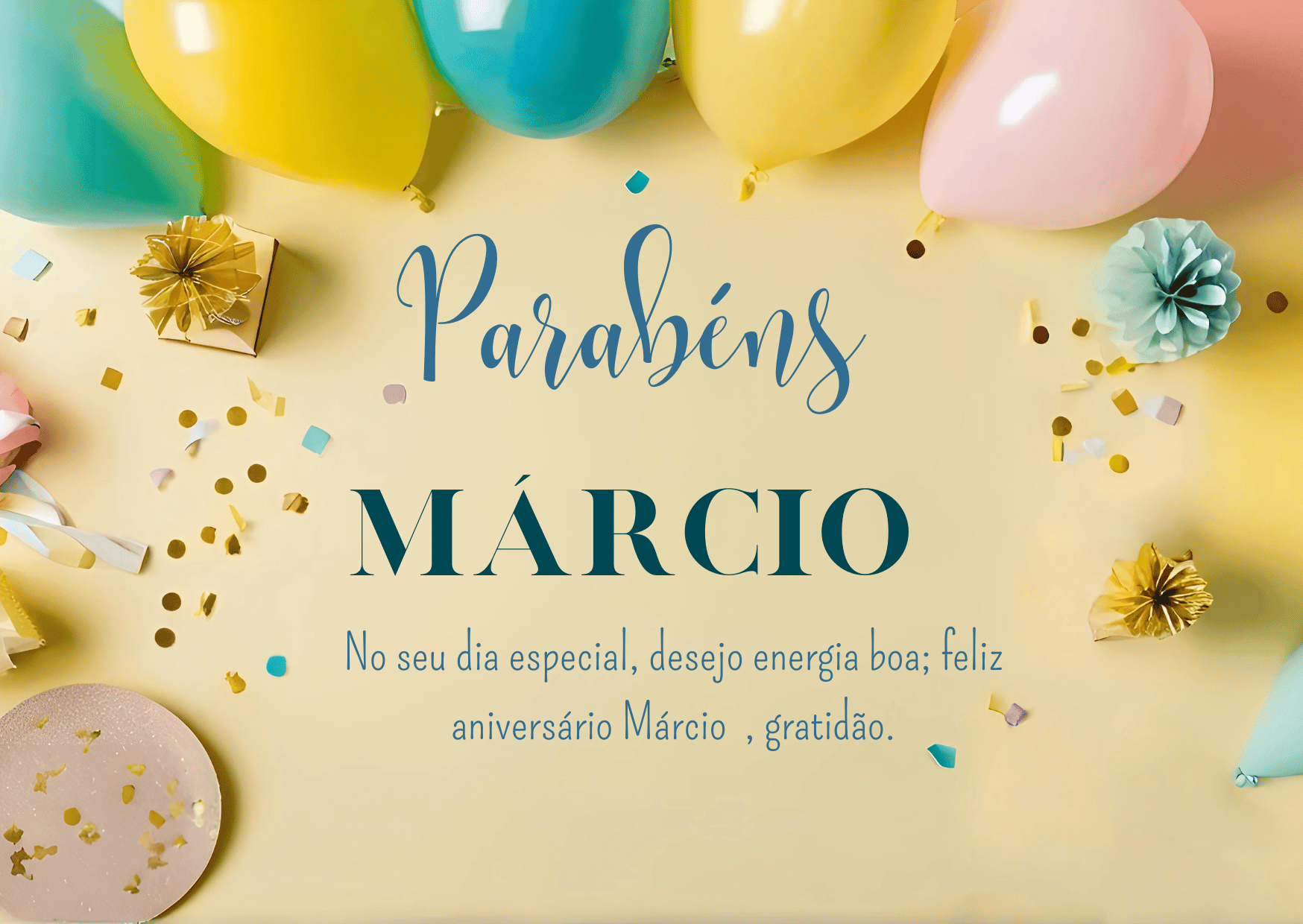Márcio, se eu pudesse escolher um presente perfeito para você, eu escolheria um ano inteiro de paz e conquistas. Paz para viver com mais calma e conquistas para você sentir orgulho do seu caminho. Feliz aniversário Márcio!