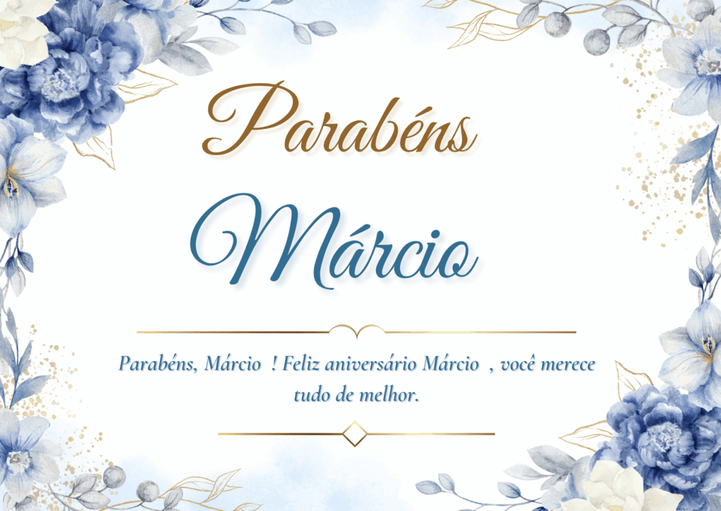 Feliz aniversário Márcio! Que Deus abençoe sua vida, proteja seus passos e ilumine suas decisões. Hoje eu desejo que você sinta orgulho do que já construiu e confiança no que ainda vai conquistar.