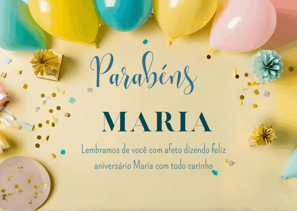 Hoje celebramos você, Maria! Que este feliz aniversario Maria encha seu coração de paz, alegria e gratidão. Que cada mensagem e abraço recebido lembrem o quanto você é amada.