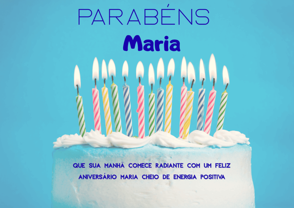 Parabéns, Maria! Que o feliz aniversario Maria seja iluminado de amor, fé e boas energias. Que você sinta o quanto é especial e querida por todos que fazem parte da sua vida.