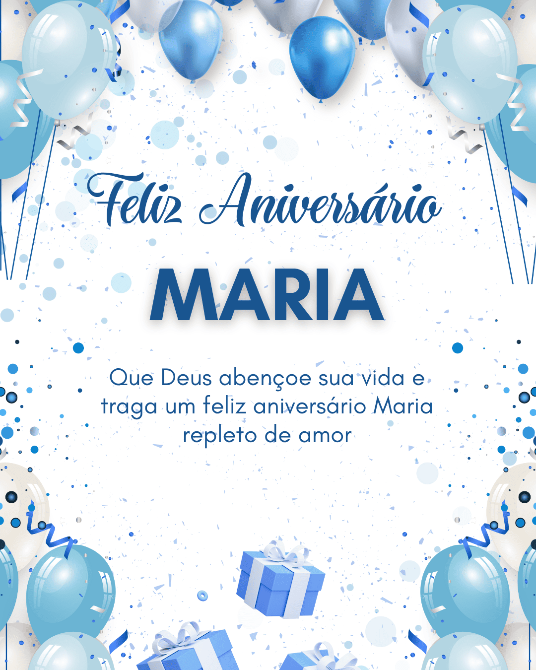 Neste dia tão especial, Maria, desejo que Deus cubra sua vida com paz e esperança. Que seu feliz aniversario Maria seja uma celebração cheia de significado e alegria.