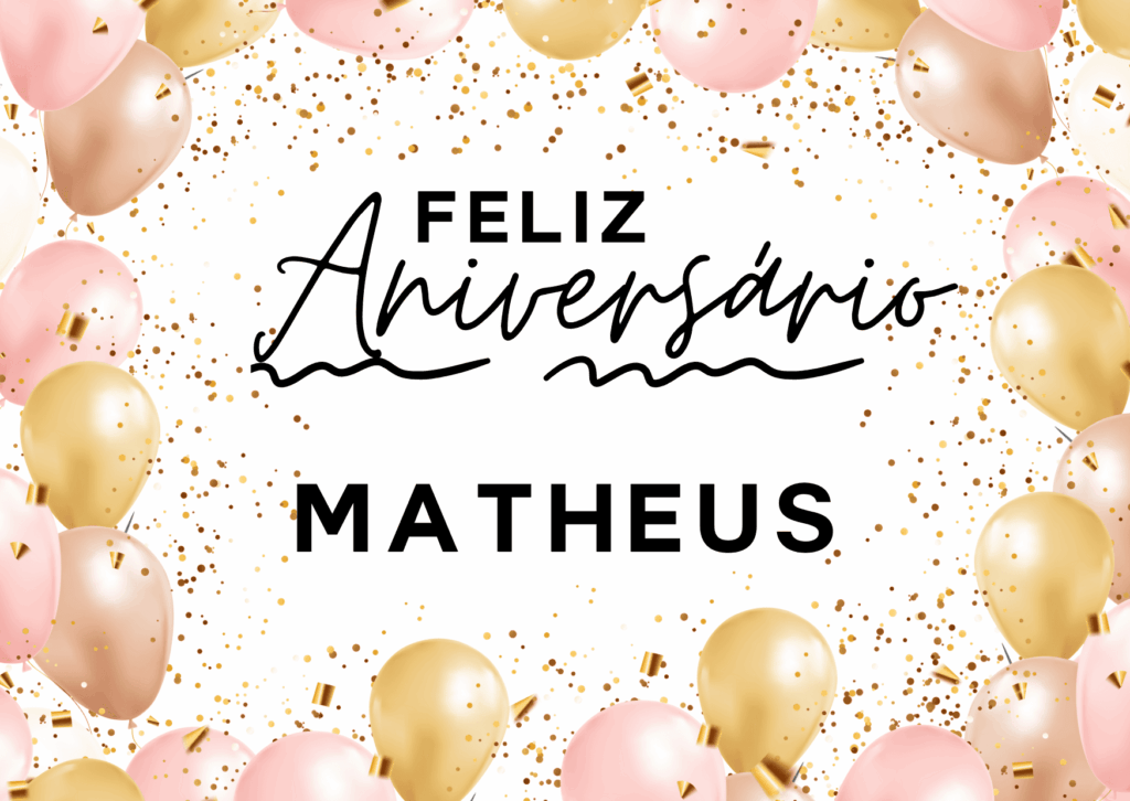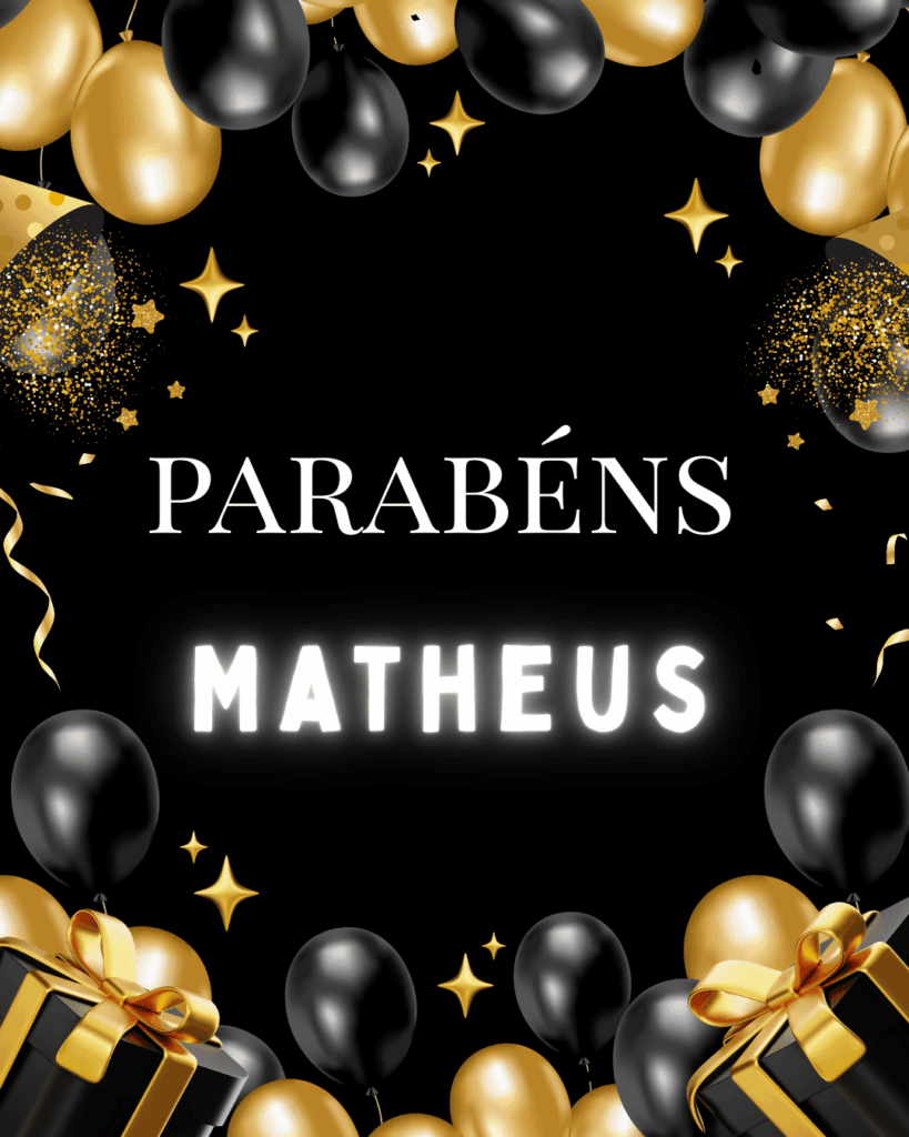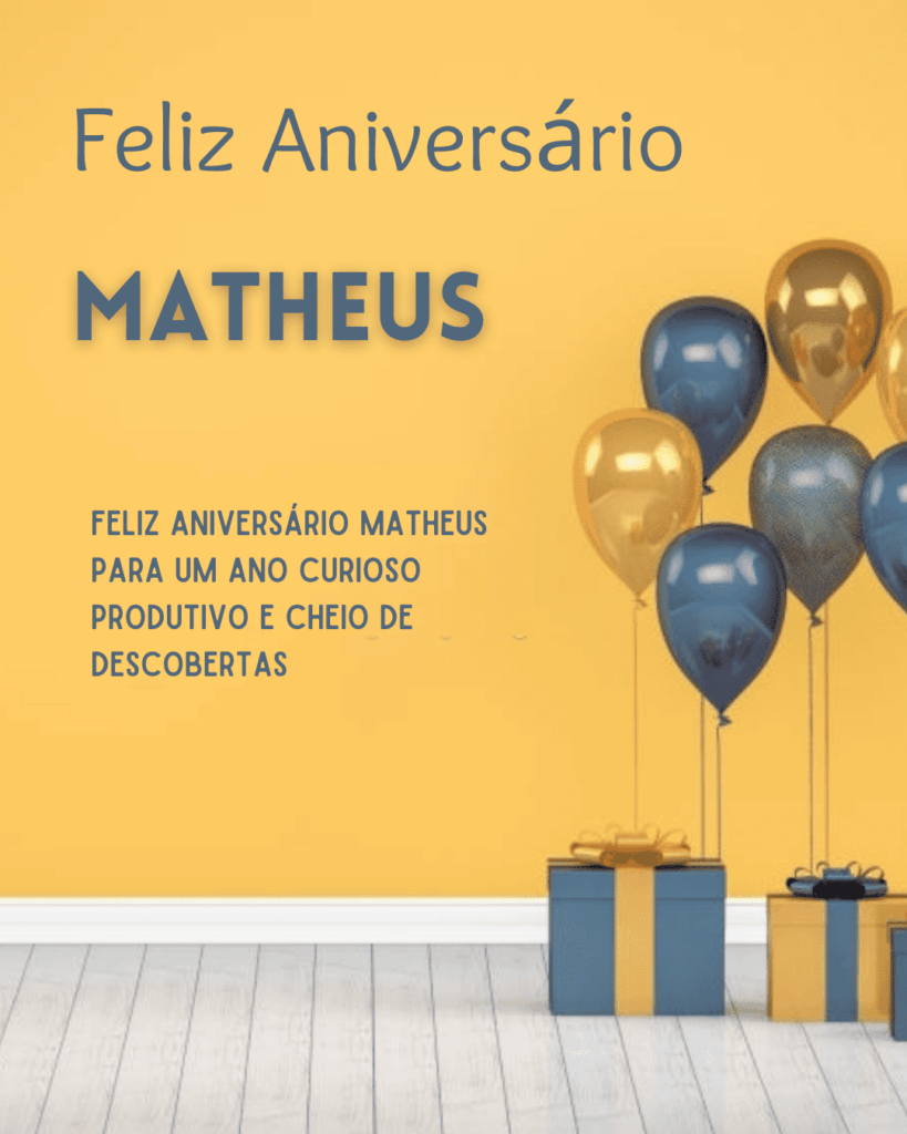 Feliz aniversário Matheus! Hoje é dia de comemorar tudo o que você já viveu e tudo o que ainda vai conquistar. Eu te desejo um aniversário com risadas, boas conversas e aquela sensação boa de que coisas grandes estão a caminho.