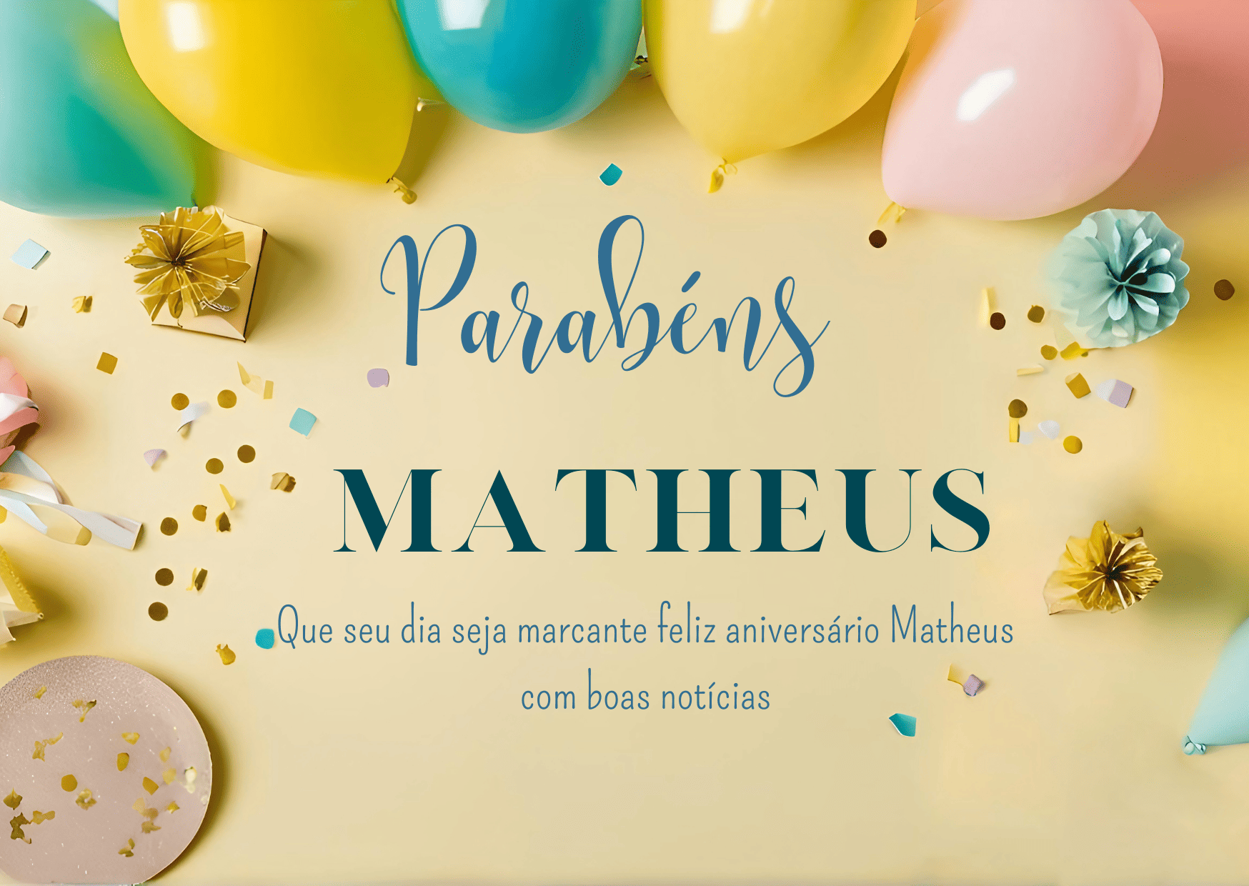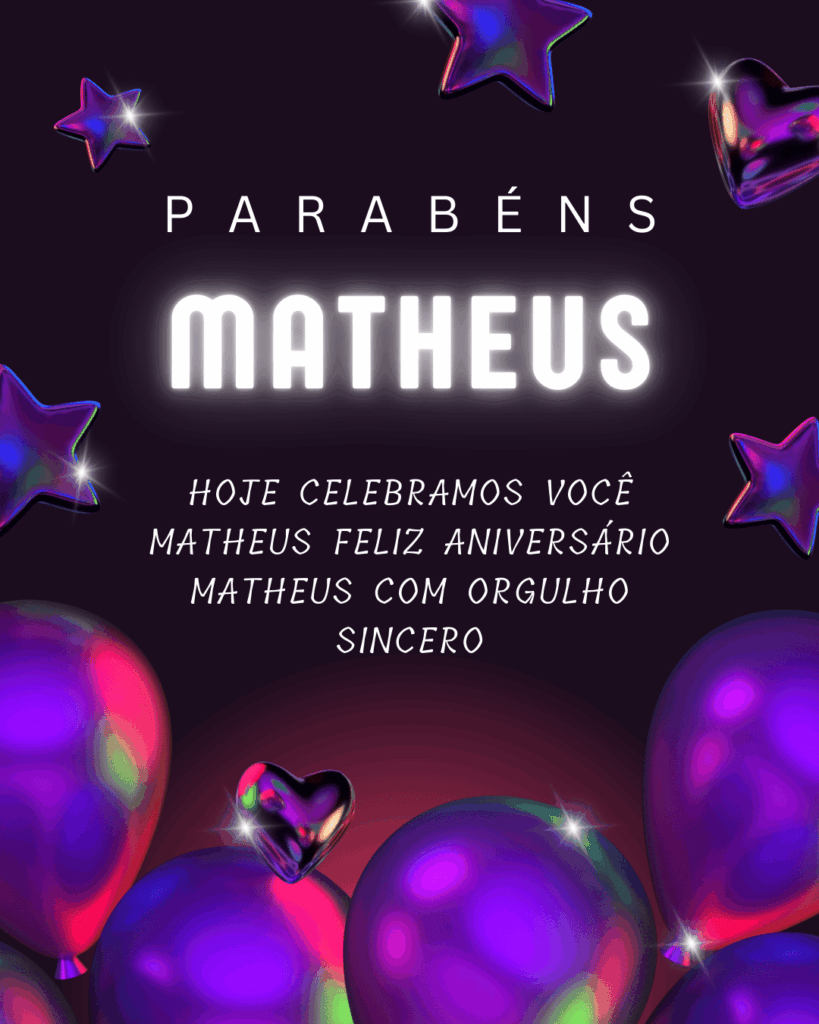 Matheus, hoje é o seu dia e eu quero te desejar tudo de melhor. Você tem um jeito especial de encarar a vida, com energia e autenticidade, e isso faz você se destacar. Feliz aniversário Matheus, que seu dia seja leve, com boas surpresas e muita alegria.