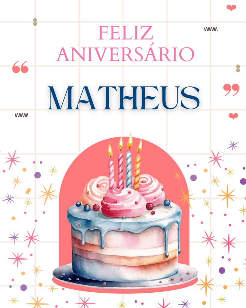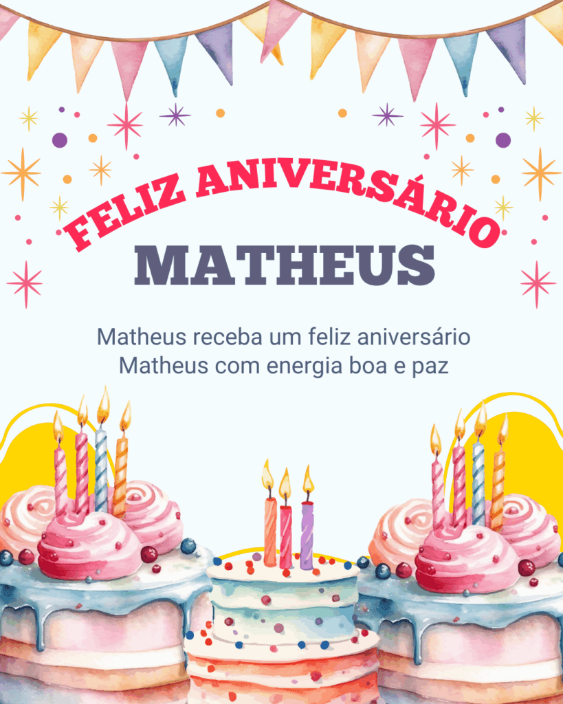 Matheus, hoje eu te desejo um aniversário inesquecível, com coisas simples e boas: uma conversa gostosa, um momento de paz e uma comemoração que te faça sorrir de verdade. Feliz aniversário Matheus, que seu dia seja incrível!