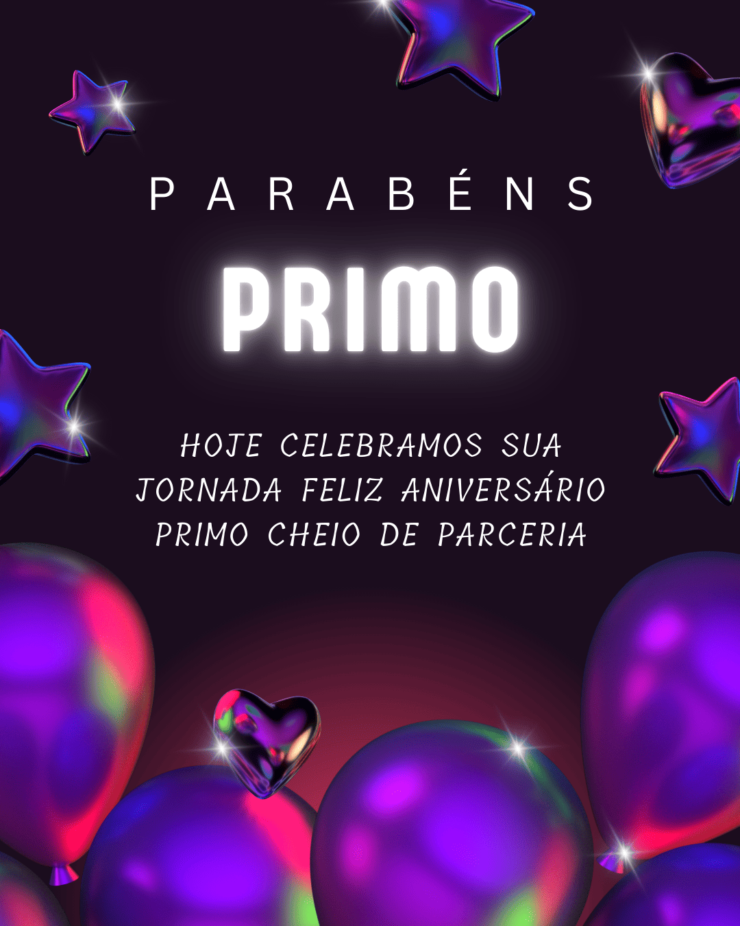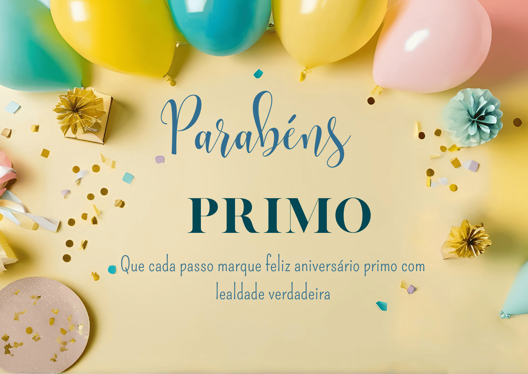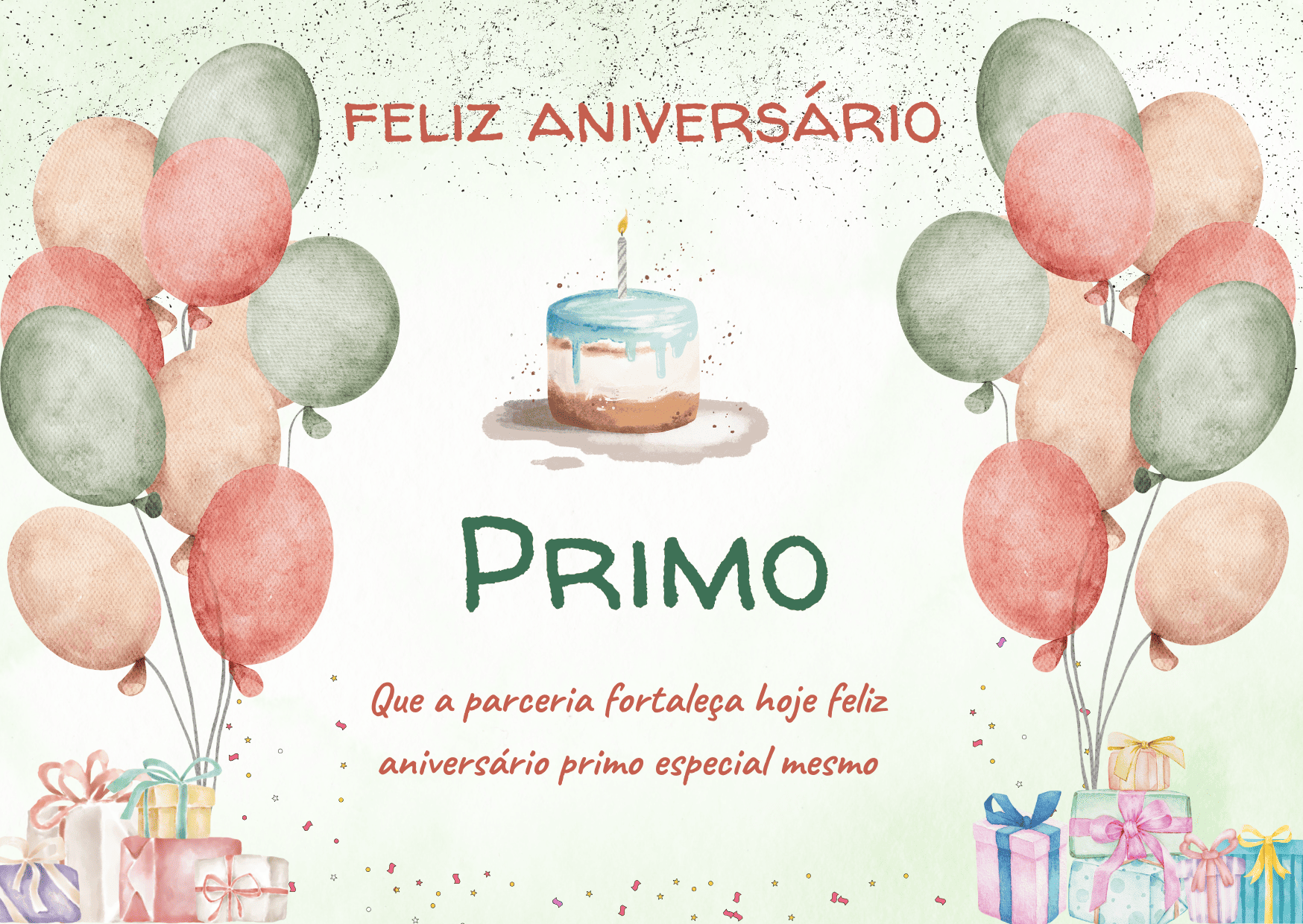 Primo, que felicidade comemorar mais um ano da sua vida. Você faz parte da minha história e de muitas lembranças boas, e eu sou grato(a) por ter você na família.