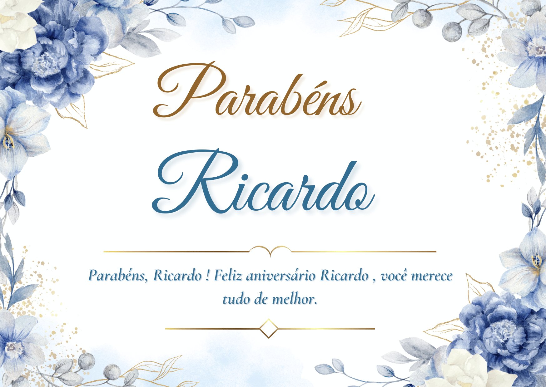 Ricardo, se eu pudesse escolher um presente perfeito para você, eu escolheria um ano inteiro de paz e conquistas. Paz para viver com mais calma e conquistas para você sentir orgulho do seu caminho. Feliz aniversário Ricardo!