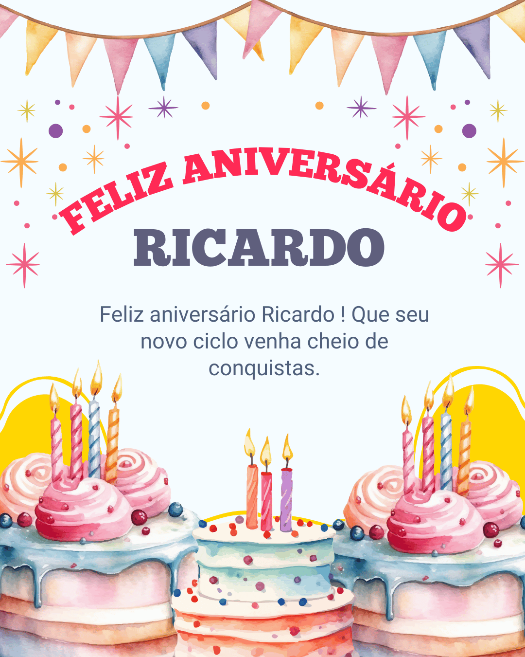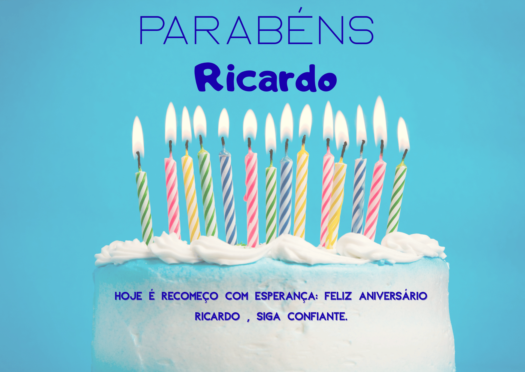Feliz aniversário Ricardo! Que Deus abençoe sua vida, proteja seus passos e ilumine suas decisões. Hoje eu desejo que você sinta orgulho do que já construiu e confiança no que ainda vai conquistar.