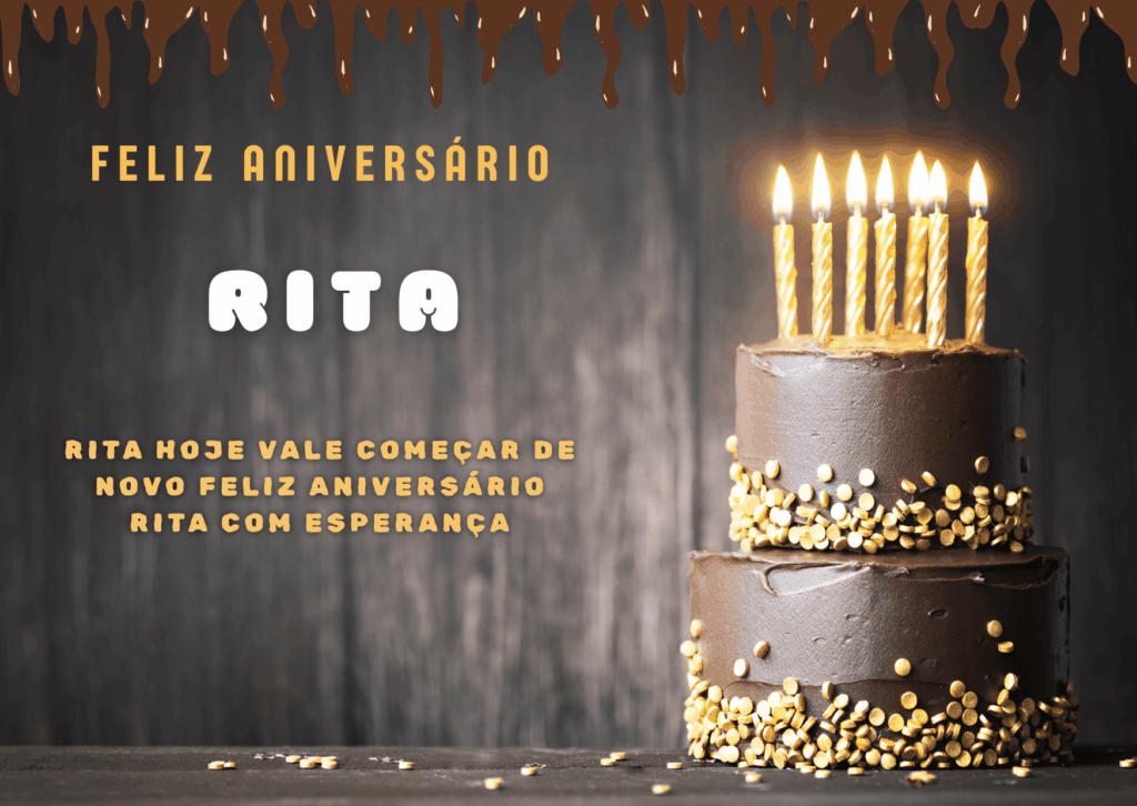 Feliz aniversário Rita! Hoje é dia de celebrar sua vida, sua história e tudo o que você já conquistou. Eu te desejo um aniversário com risadas, carinho e aquela sensação boa de que o melhor ainda está por vir.
