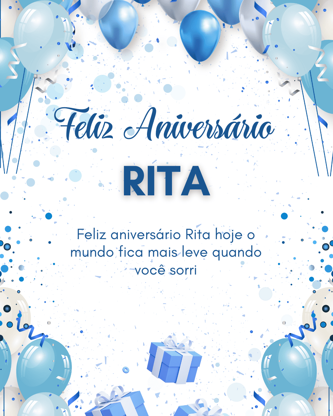 Rita, hoje é o seu dia e eu quero te desejar um aniversário cheio de paz e alegria. Você tem um jeito especial de iluminar a vida das pessoas, com carinho, presença e um sorriso que acalma. Feliz aniversário Rita, que seu coração esteja leve e que você se sinta muito amada.