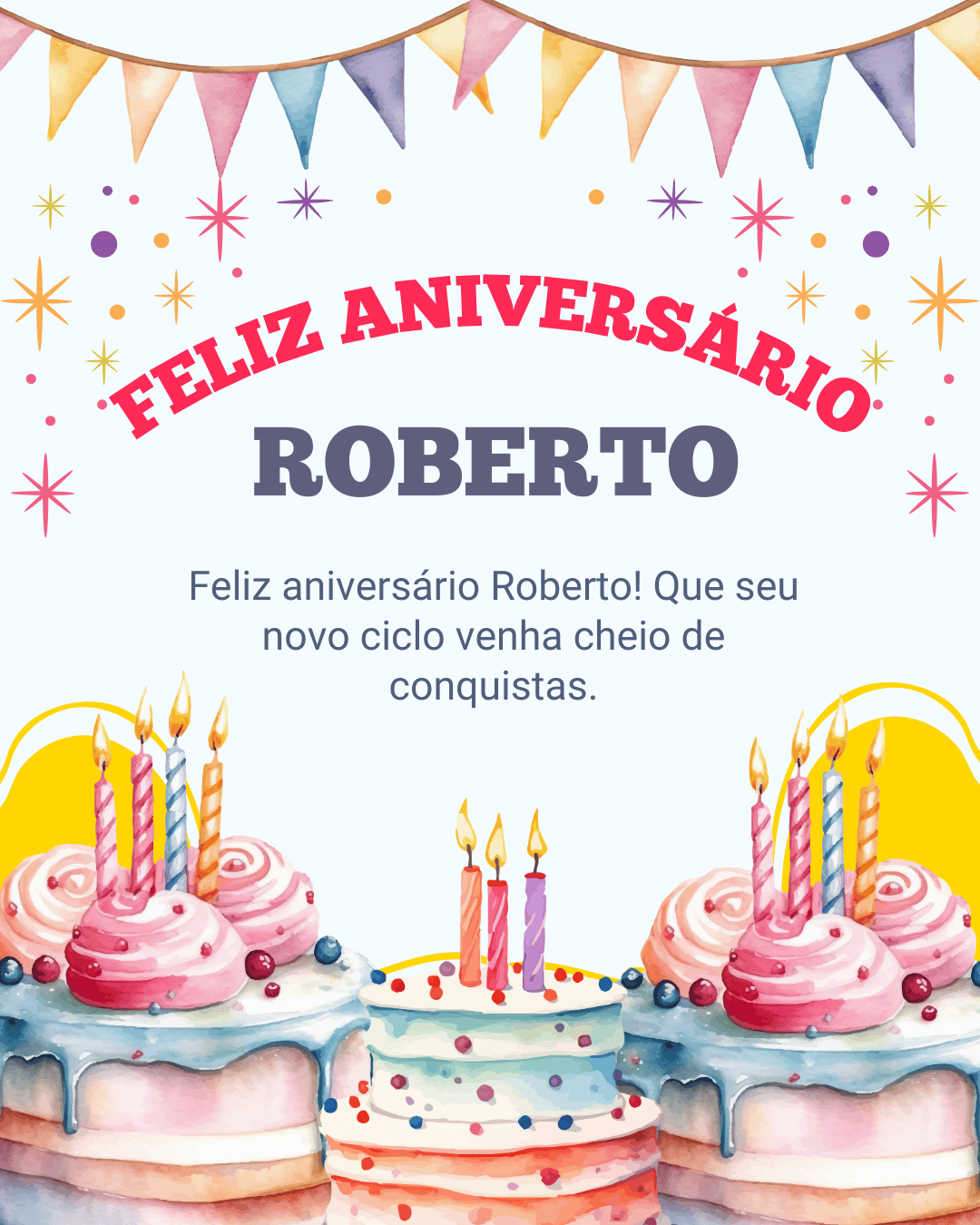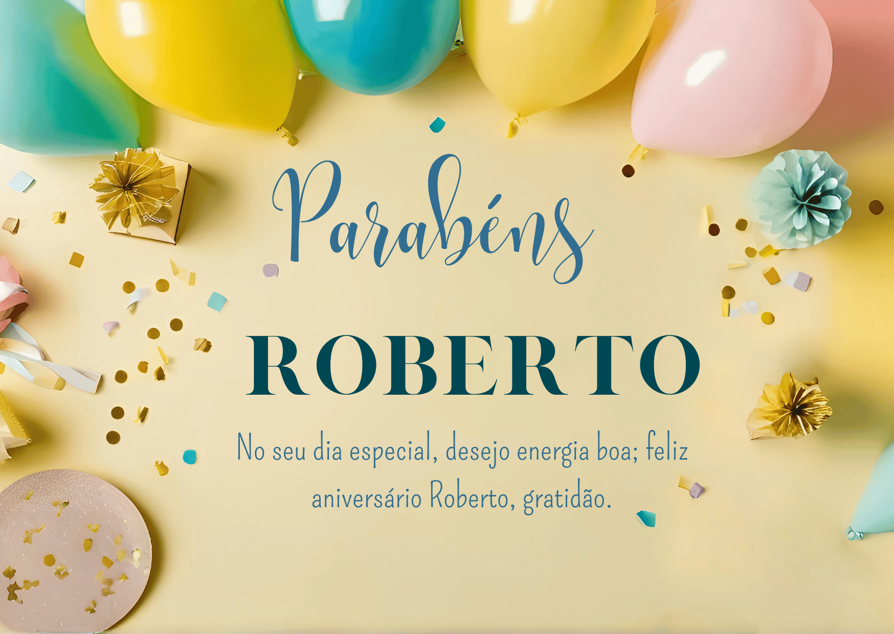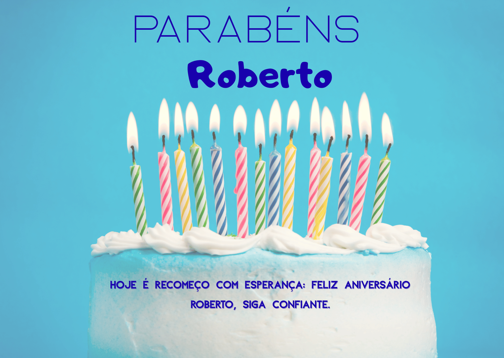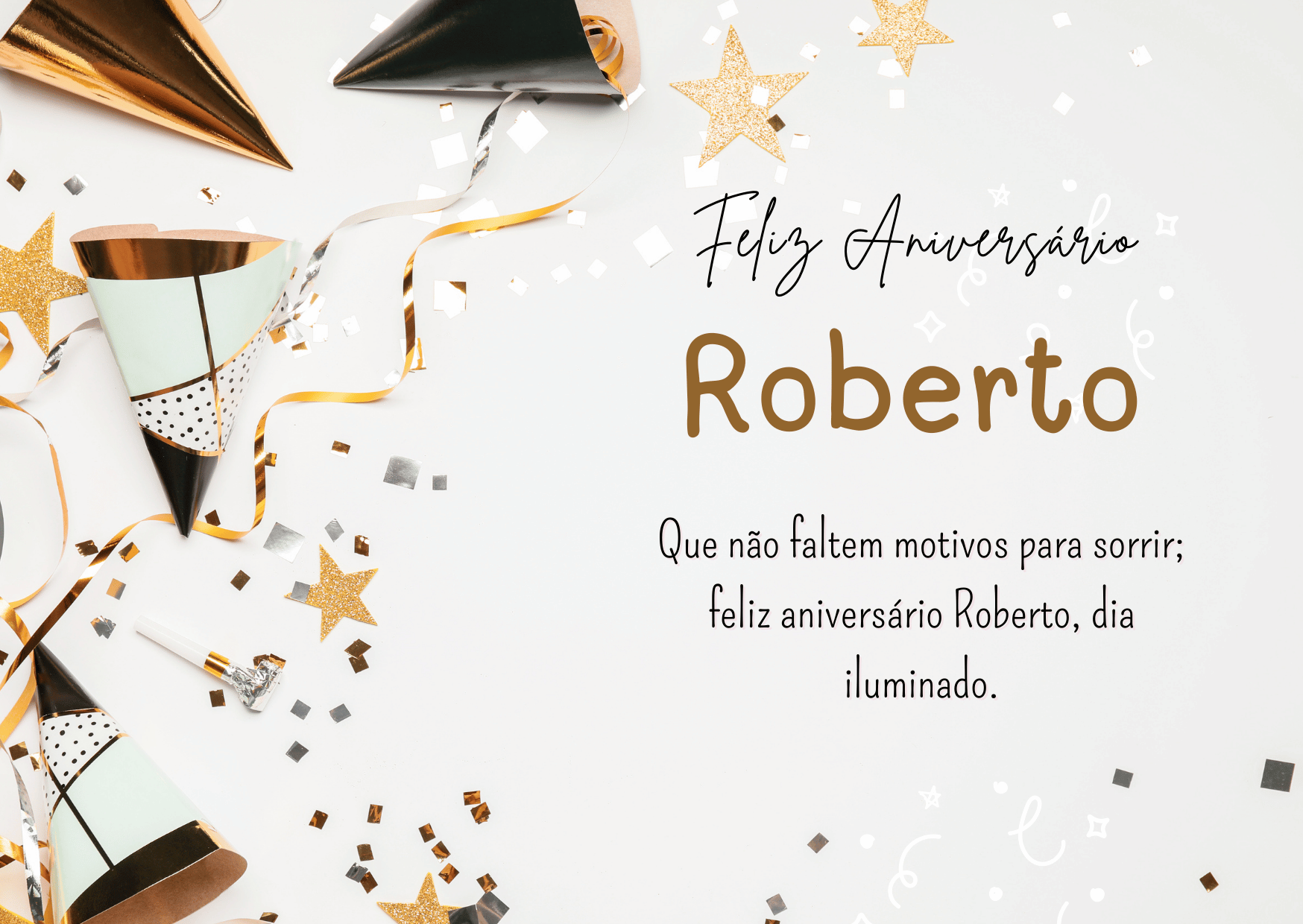 Feliz aniversário Roberto! Hoje é dia de celebrar a sua vida e tudo o que você já construiu com esforço e dedicação. Que você tenha um aniversário com boa companhia, palavras bonitas e motivos de sobra para sorrir.