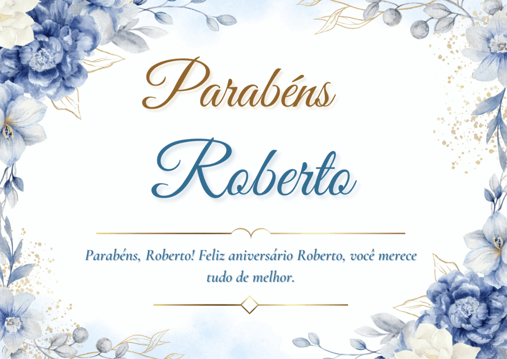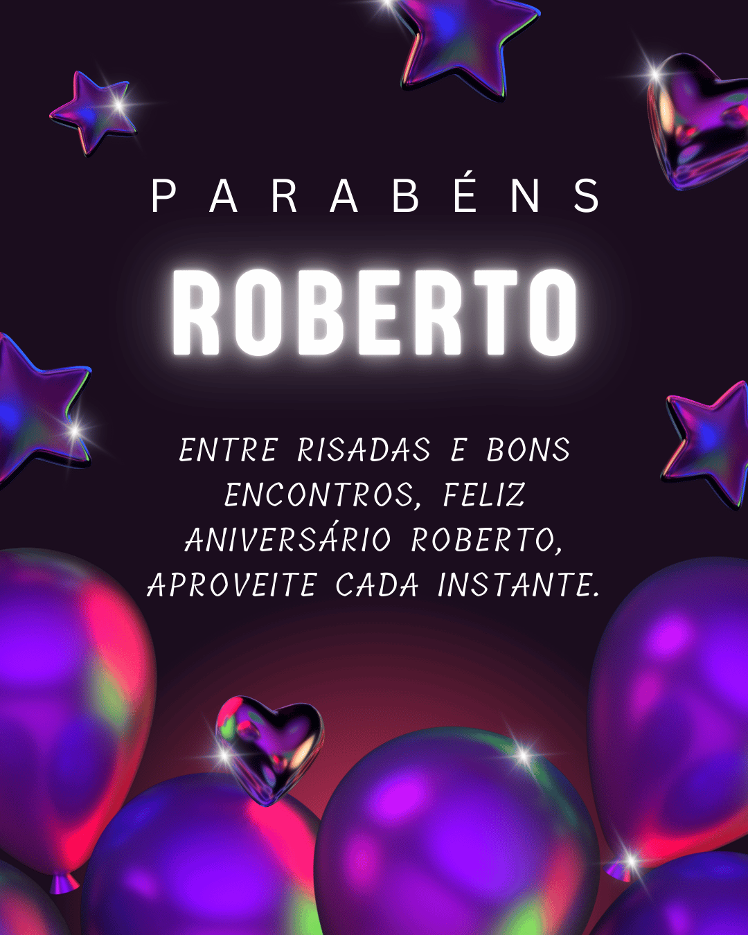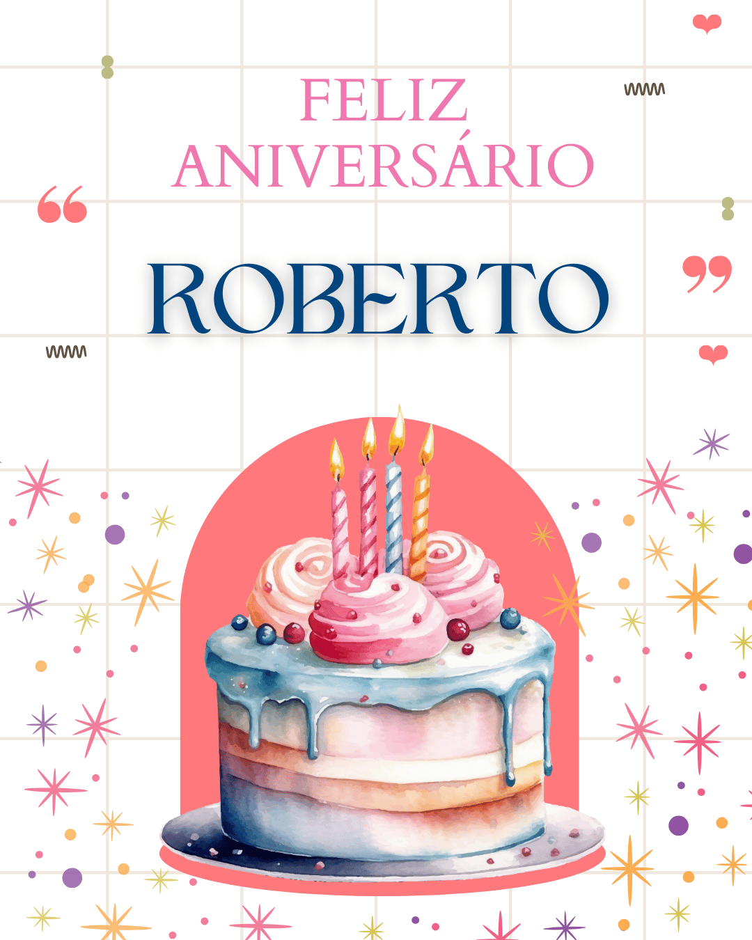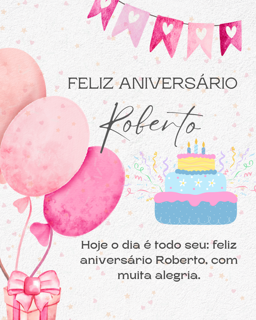 Feliz aniversário Roberto! Hoje é dia de celebrar a sua vida e tudo o que você já construiu com esforço e dedicação. Que você tenha um aniversário com boa companhia, palavras bonitas e motivos de sobra para sorrir.