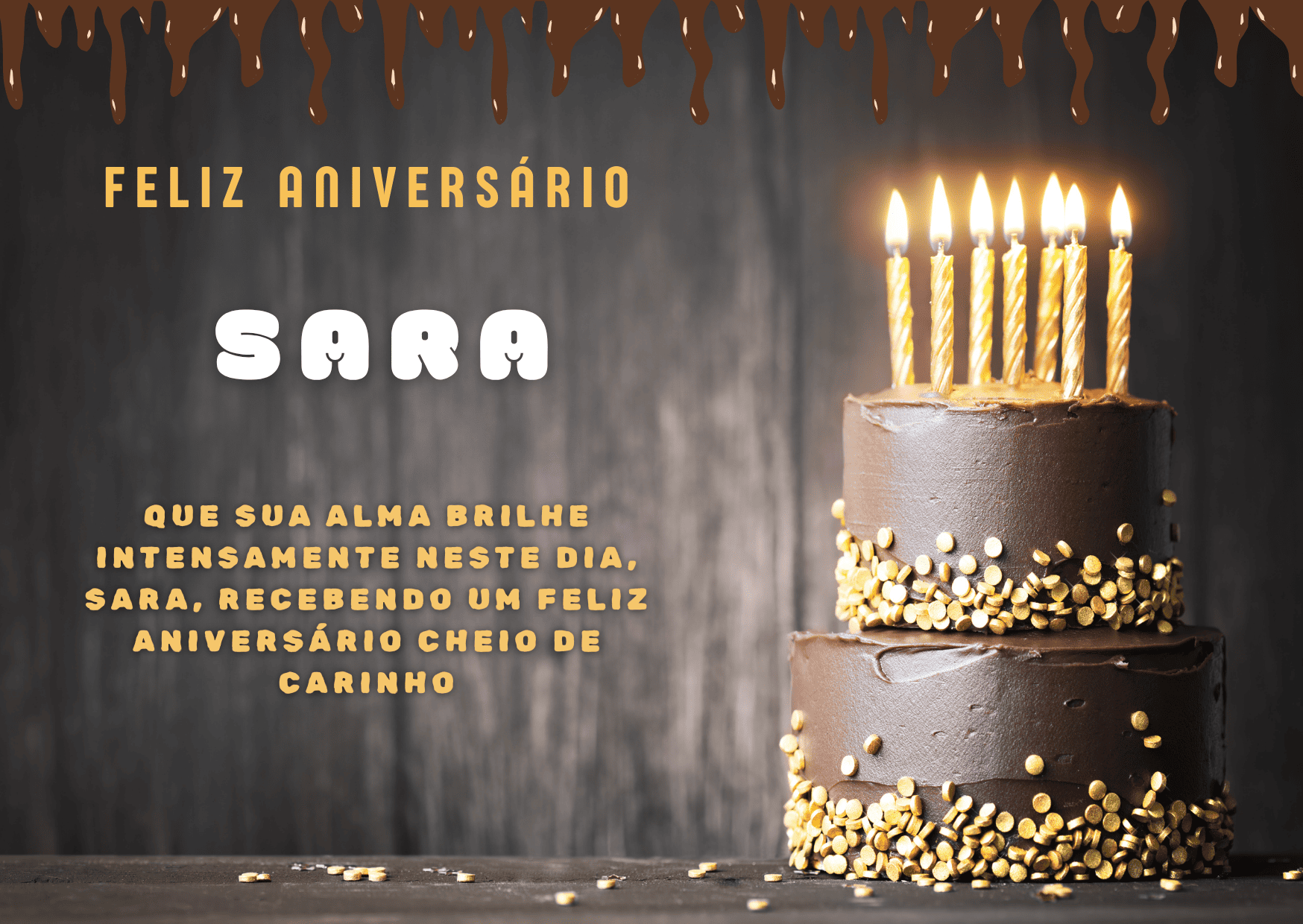 Sara, que seu feliz aniversario Sara seja alegre, leve e repleto de boas lembranças. Que você receba toda a energia positiva que merece e que este dia te inspire.