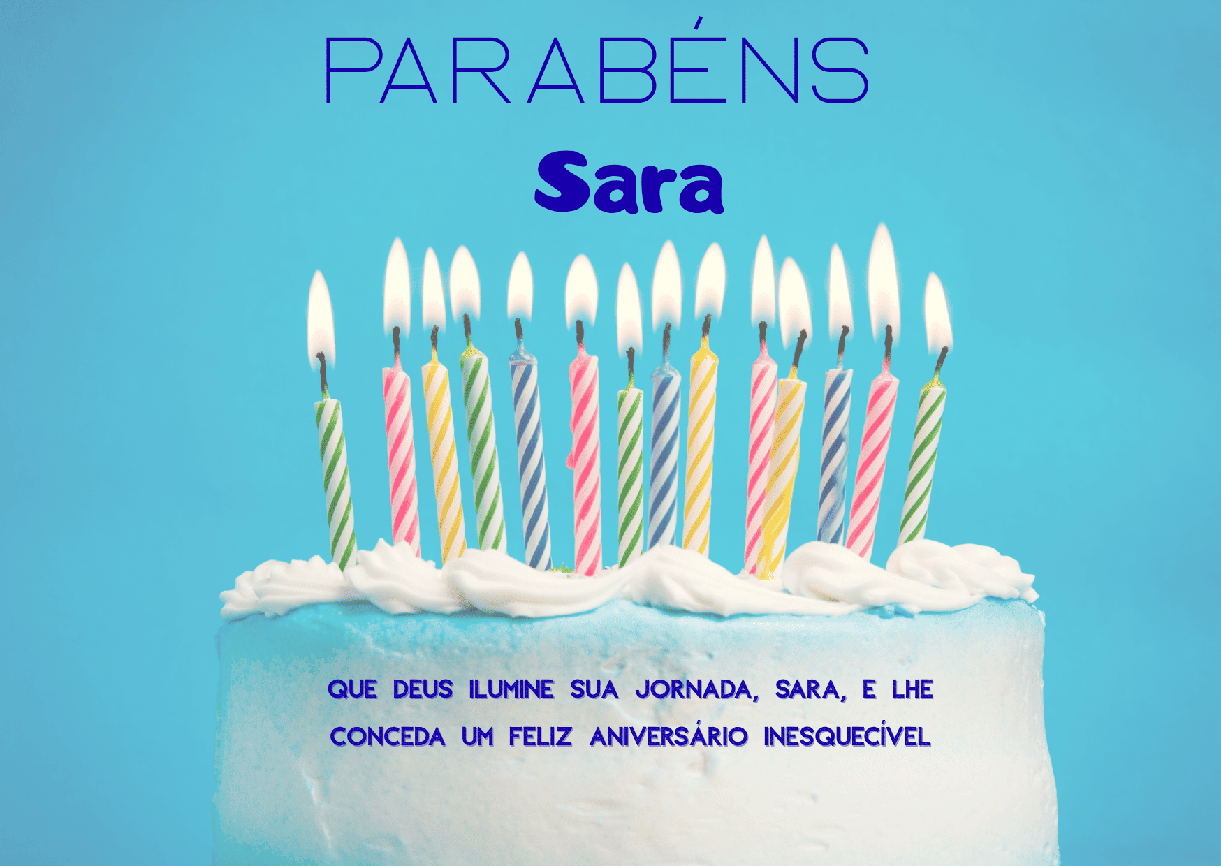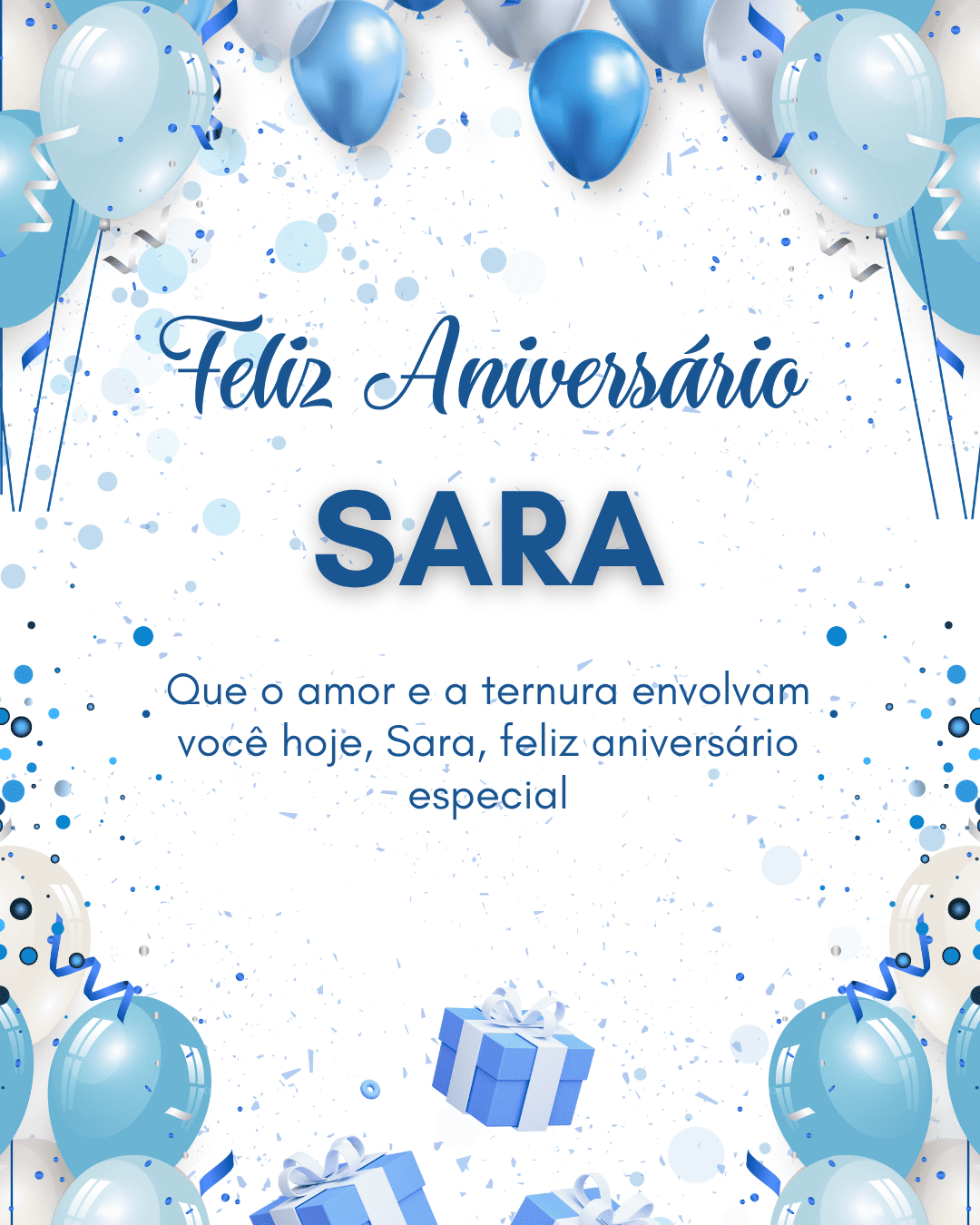 Sara, que seu feliz aniversario Sara seja repleto de luz, amor e mensagens que aqueçam o coração. Hoje celebramos a pessoa incrível que você é e tudo o que transmite ao mundo.