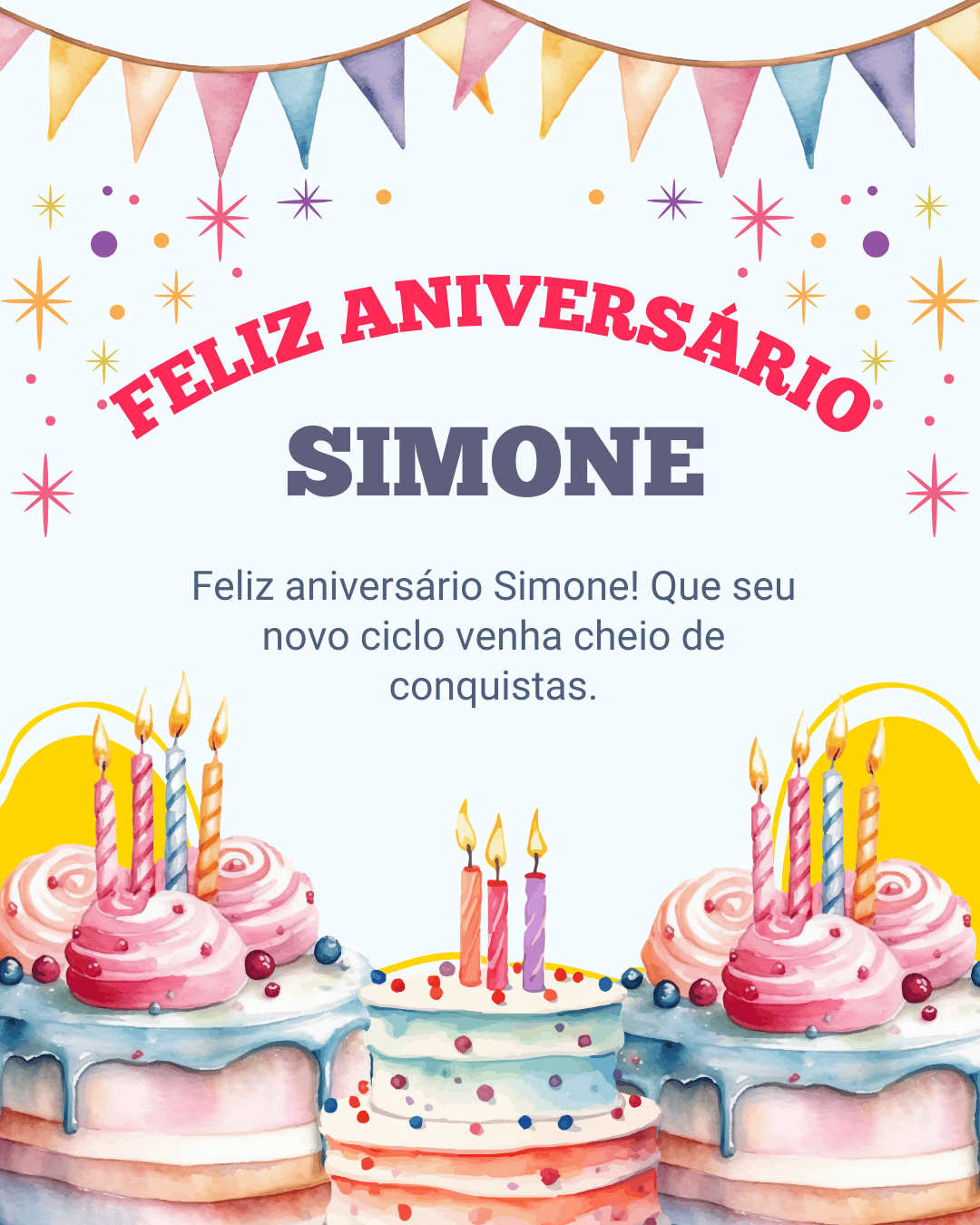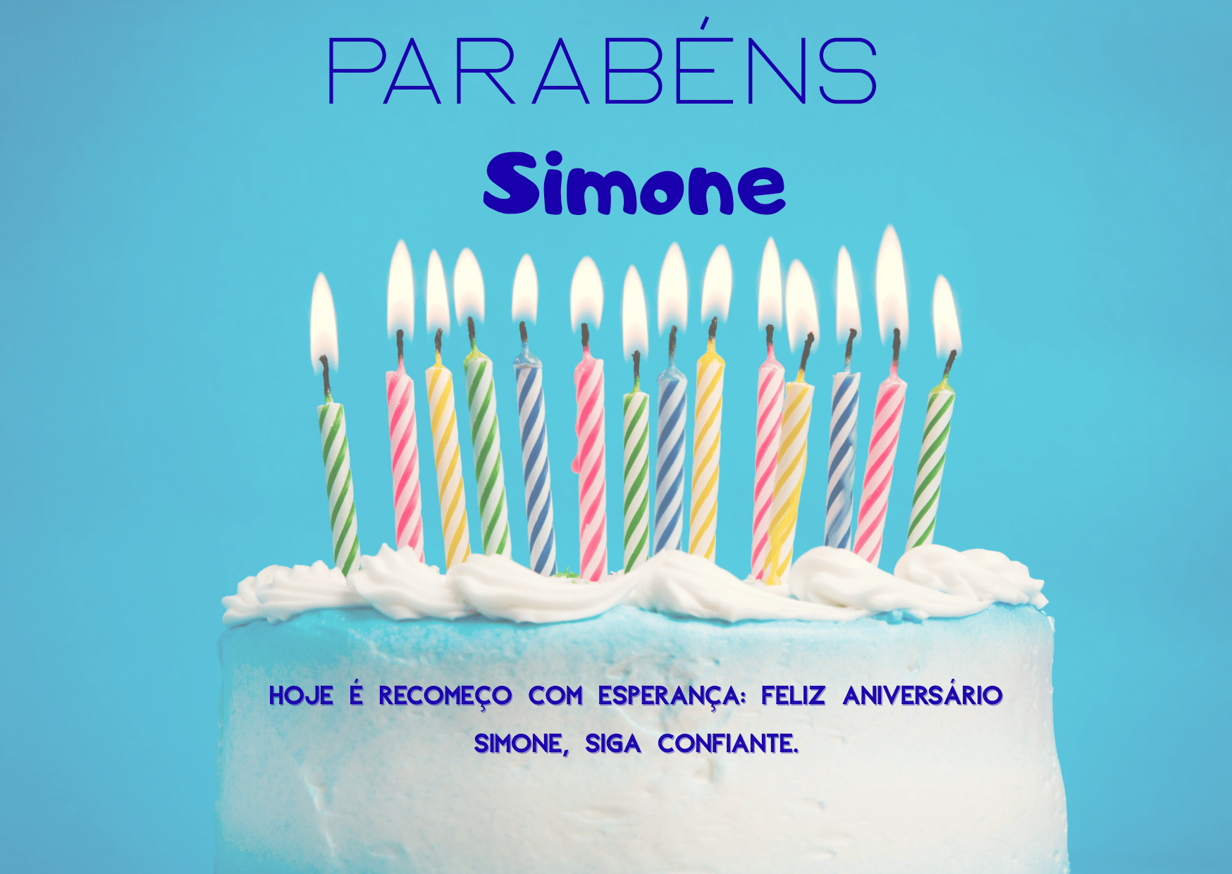 Feliz aniversário Simone! Que Deus abençoe sua vida, proteja seus passos e ilumine suas decisões. Hoje eu desejo que você sinta orgulho do que já viveu e confiança no que ainda vai conquistar.