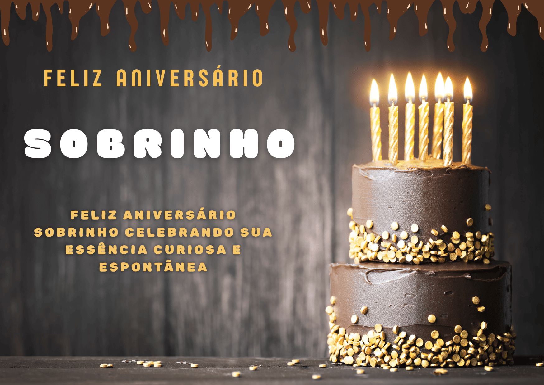 Que este novo ciclo seja cheio de boas surpresas, conquistas e muita felicidade. Que você siga firme, aprendendo, evoluindo e vivendo com leveza. Parabéns, meu sobrinho! Que você receba amor em cada detalhe do seu dia.