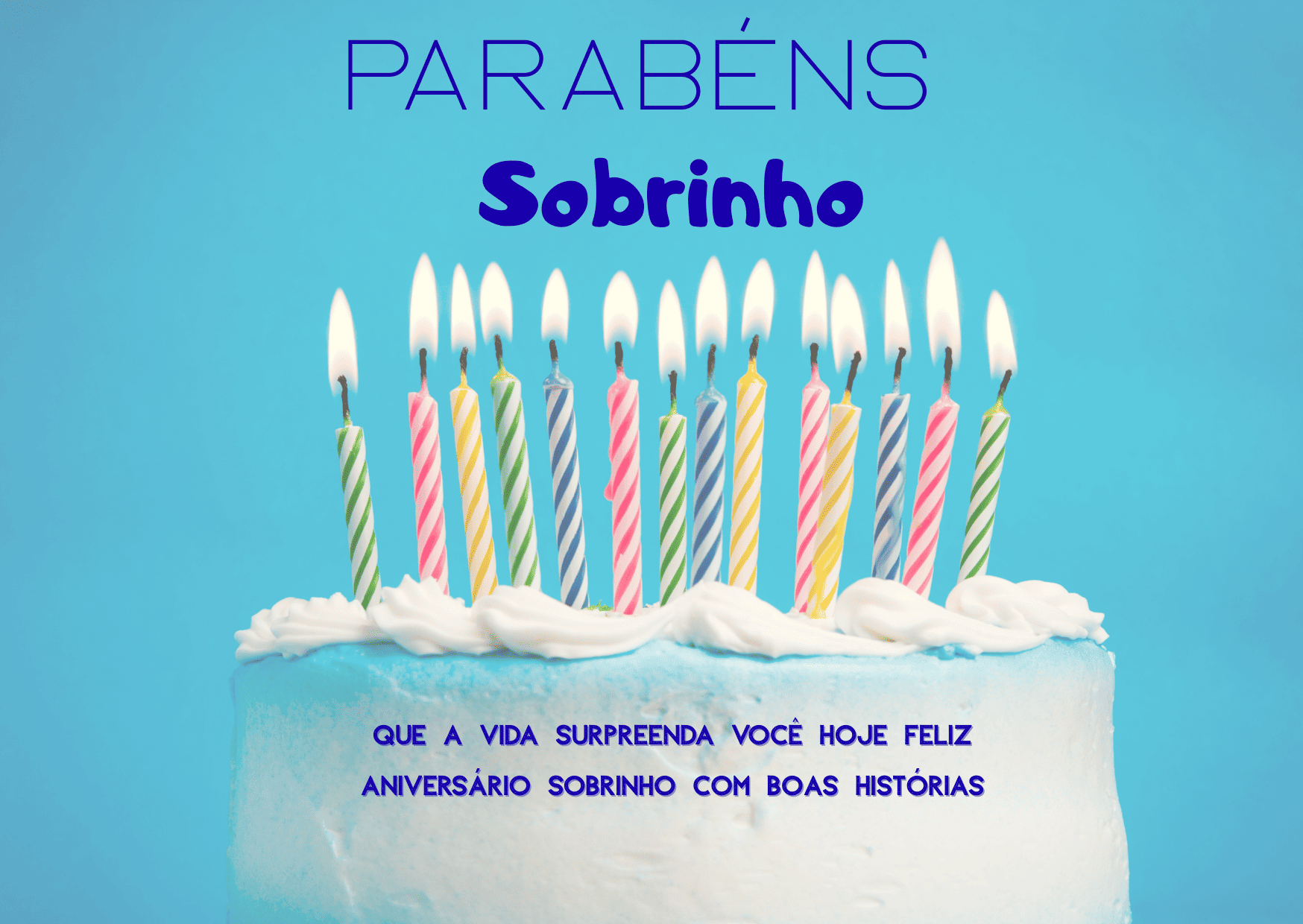 Que este novo ciclo seja generoso com você, trazendo saúde, felicidade e realizações. Que você siga forte, confiante e com esperança no coração. Parabéns, sobrinho! Que sua vida seja abençoada e que seus sonhos se realizem no tempo certo.