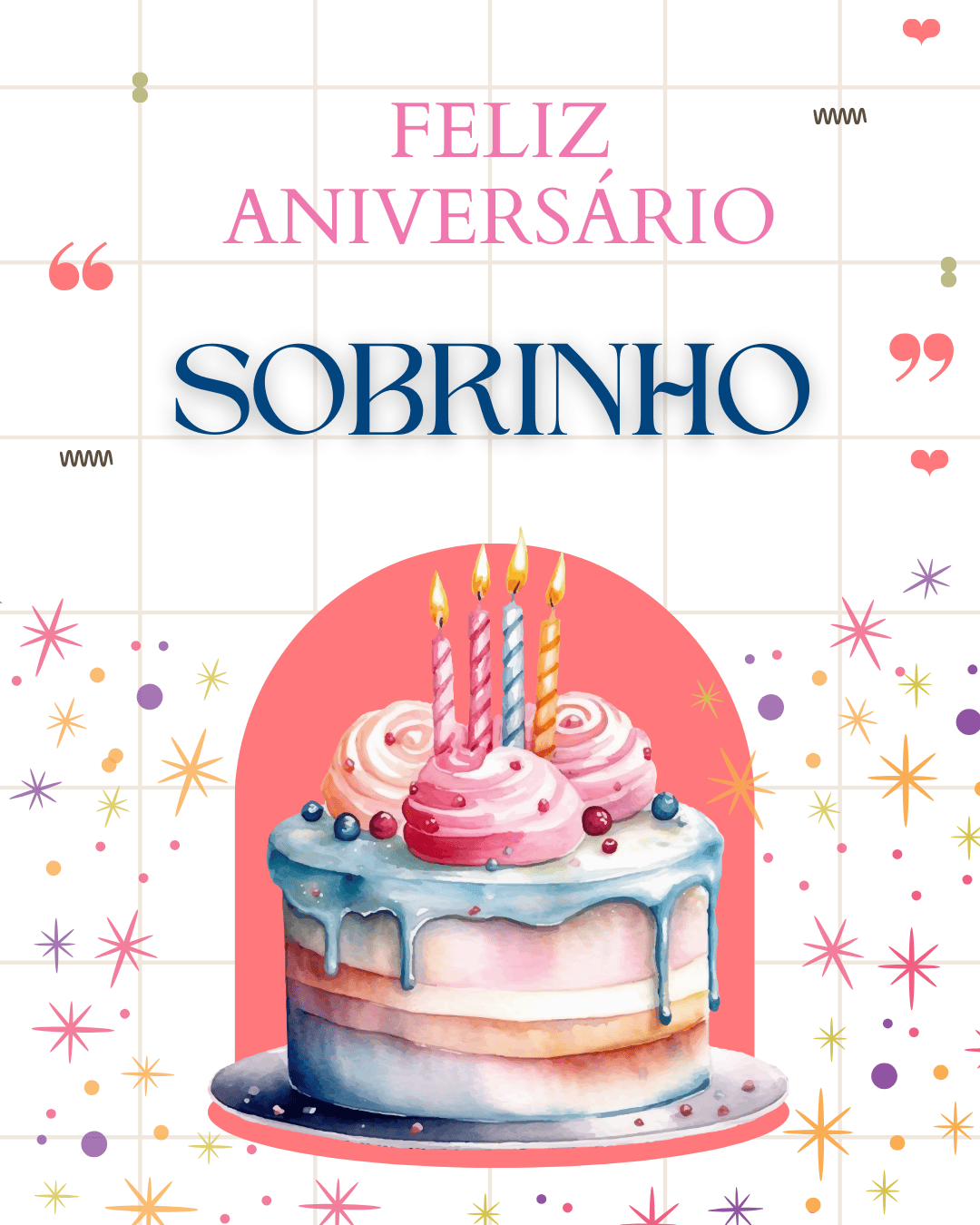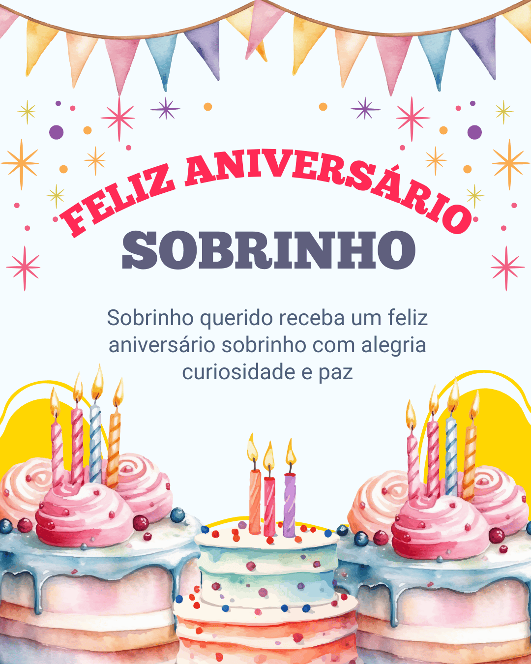 Que o novo ano venha com paz, saúde e boas oportunidades para você crescer e conquistar seus sonhos. Feliz aniversário, sobrinho! Que você continue brilhando, sendo feliz e vivendo cada etapa com coragem e gratidão.
