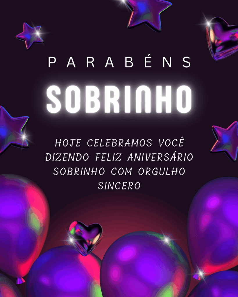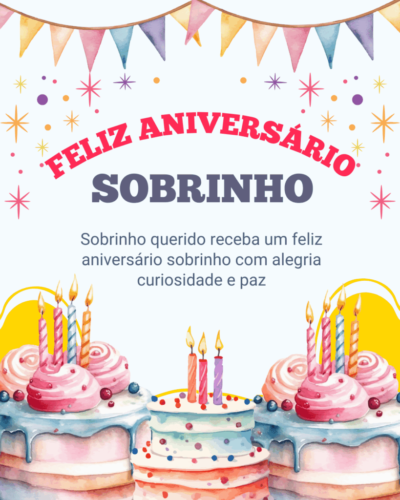 Esperamos que essas frases de feliz aniversário sobrinho te ajudem a escolher a mensagem perfeita para homenagear alguém tão querido. Cada texto foi criado para combinar com imagens prontas para baixar e compartilhar, deixando sua dedicação ainda mais bonita e completa. Escolha a frase que mais combina com o seu sobrinho, personalize se quiser e envie com muito carinho. Que o aniversário dele seja inesquecível e que o novo ciclo venha cheio de saúde, alegria, amor e conquistas.